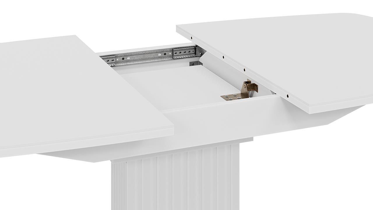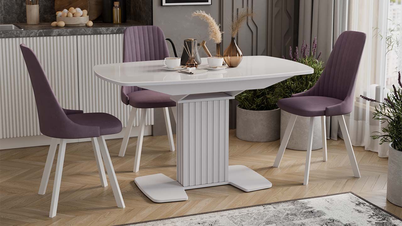 Особенностью стола является его раздвижная конструкция, которая позволяет увеличить его длину с 130 см до 161,7 см, что особенно актуально для больших компаний или семейных обедов.