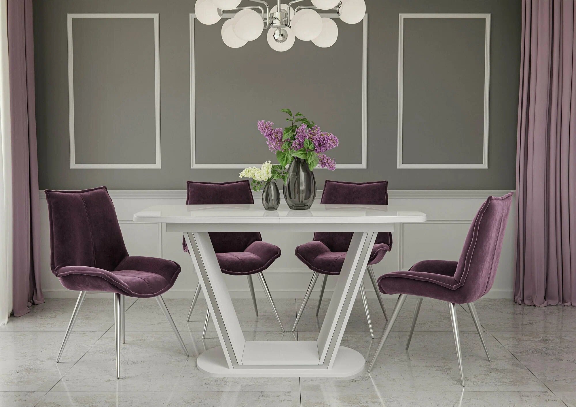 Стиль: современный, с глянцевым покрытием и мраморными вставками.