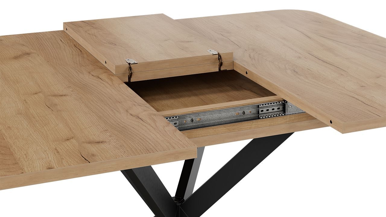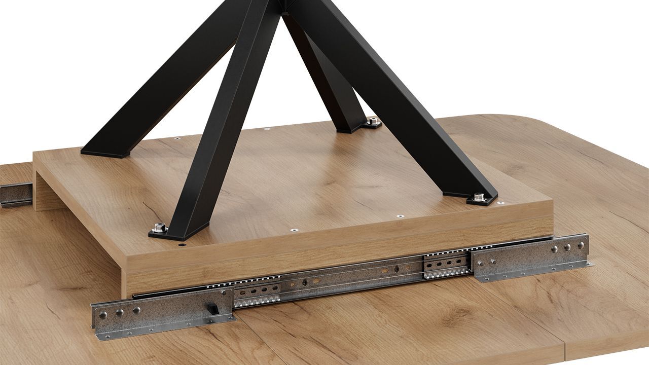 Функциональность. Модель имеет синхронный механизм раздвижения со вставкой «бабочка», которая укладывается вручную. Это выручает в моменты прихода гостей, которых хочется разместить свободно и с комфортом. Дополнительная вставка в цвет столешницы продолжает элегантный образ изделия, делая его целостным и завершенным.