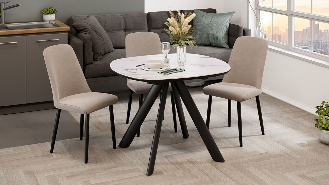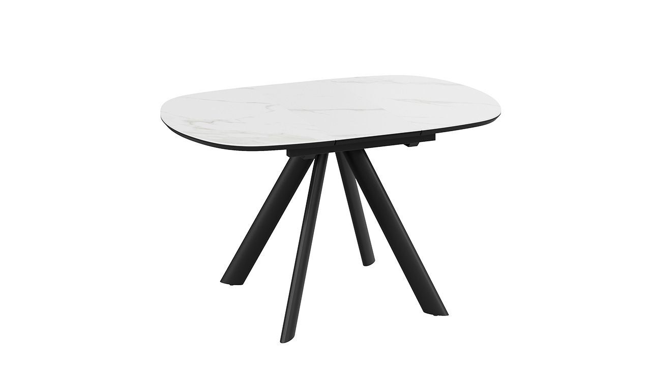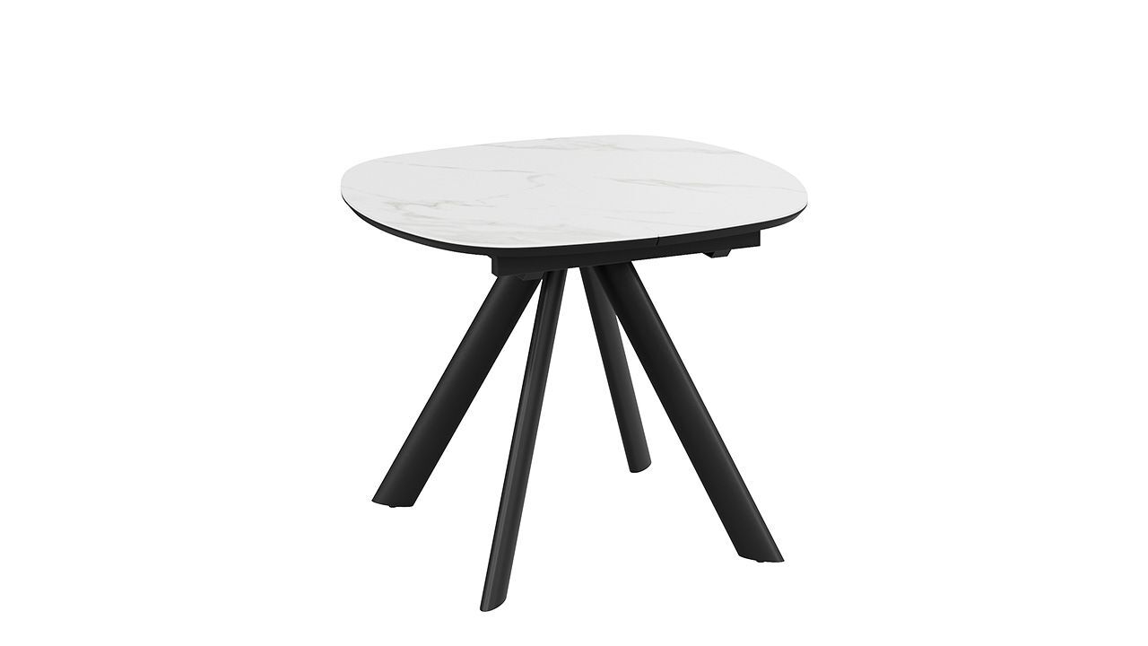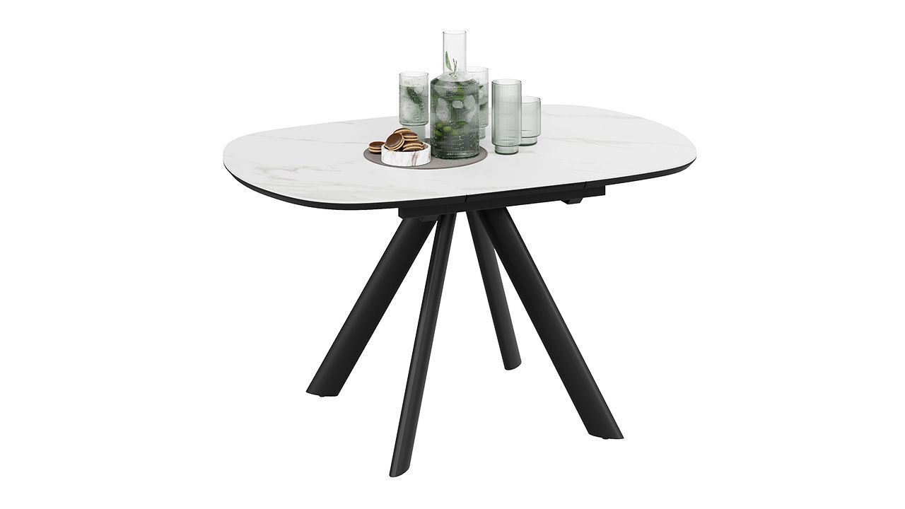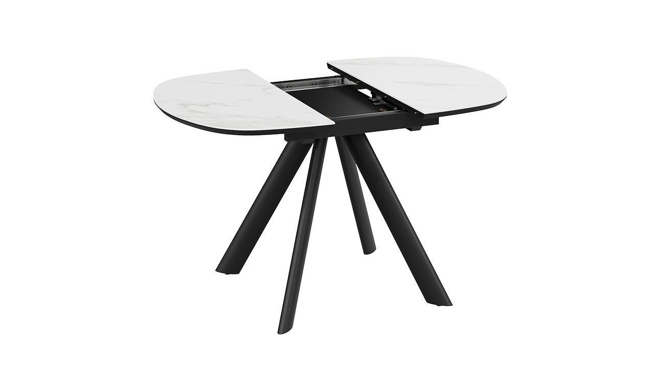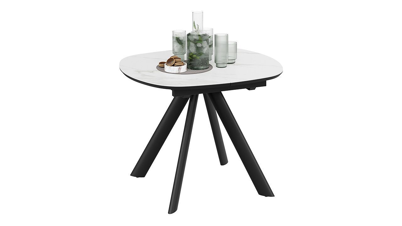Стол кухонный обеденный раздвижной Черный муар/Керамика матовая белый мрамор - это стильное, функциональное и практичное решение для вашей кухни или столовой, которое обеспечит комфорт и удобство во время приема пищи.