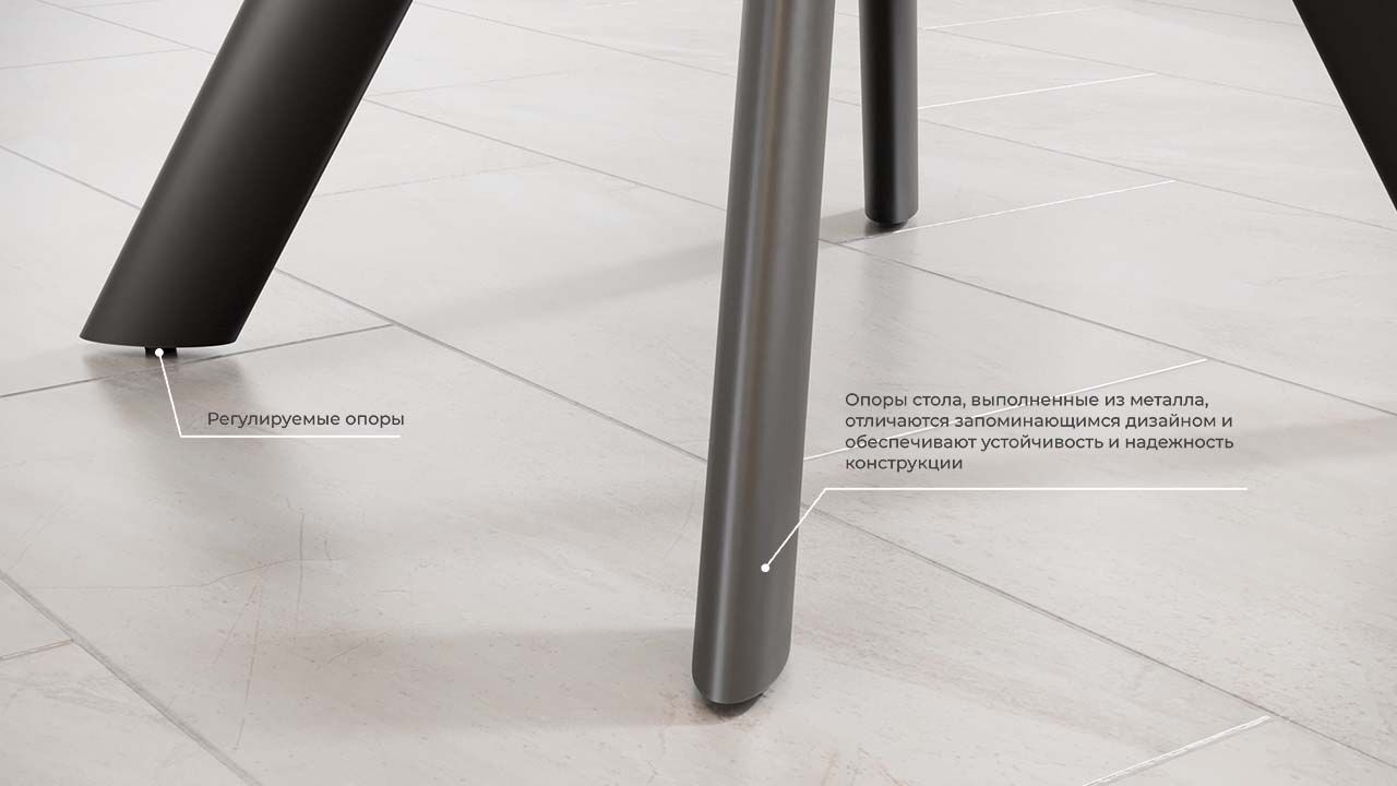 Каркас стола выполнен из прочного металла, что гарантирует его долговечность и надежность. Материалы столешницы - МДФ и керамогранит, что обеспечивает высокую прочность и устойчивость к повреждениям.
