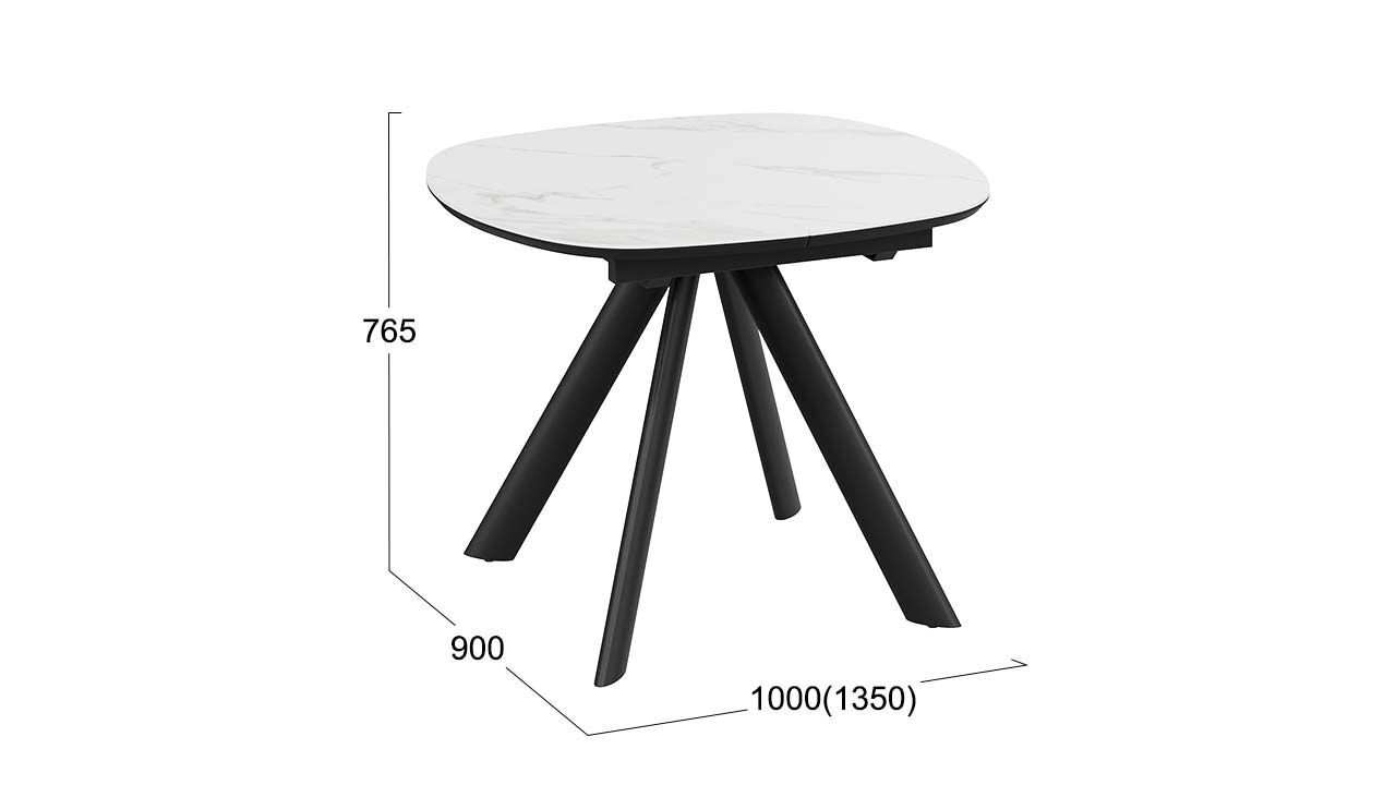 Стол кухонный обеденный раздвижной Черный муар/Керамика матовая белый мрамор 100(135)х90х76 см - это современное и функциональное решение для вашей кухни или столовой.