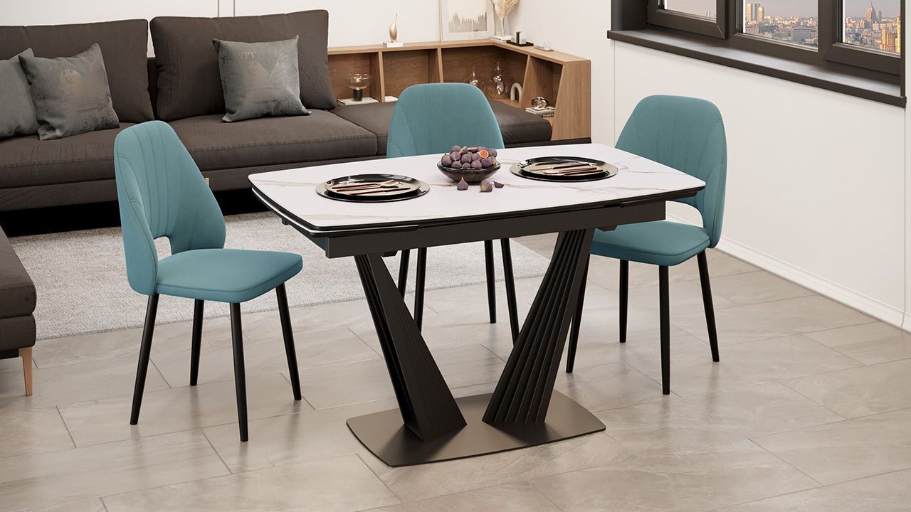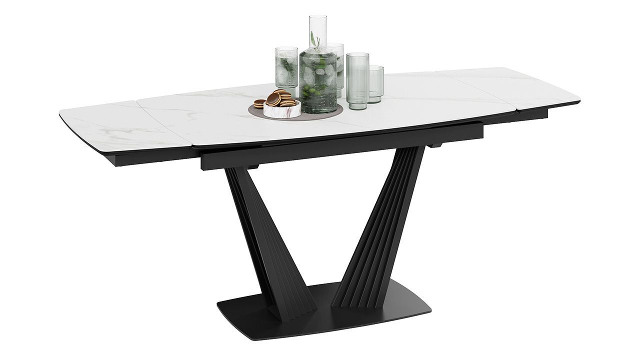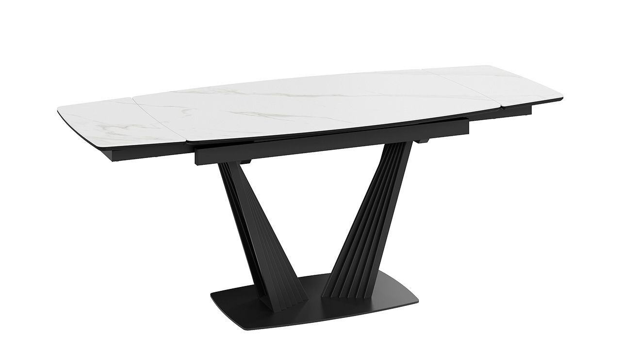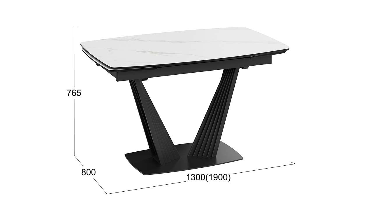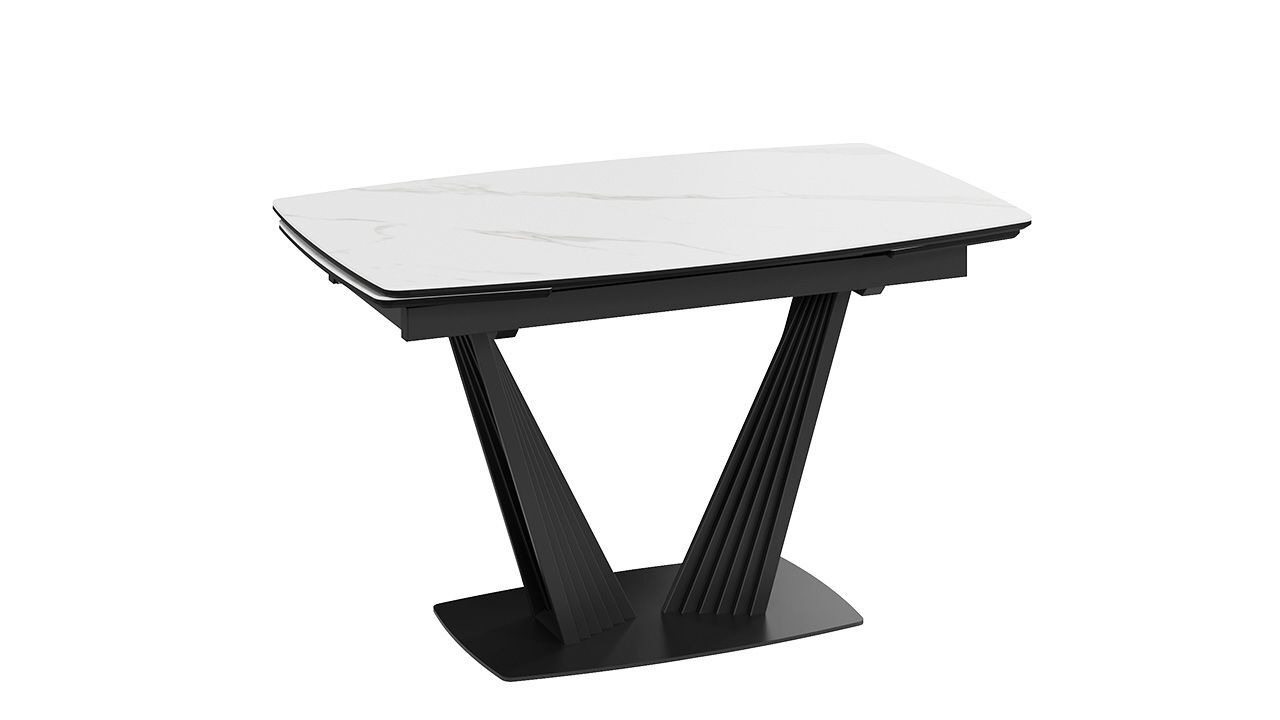 Стол кухонный обеденный раздвижной Черный муар/Керамика матовая белый мрамор 130(190)х80х76 см - это стильное и функциональное решение для вашей кухни или столовой.
