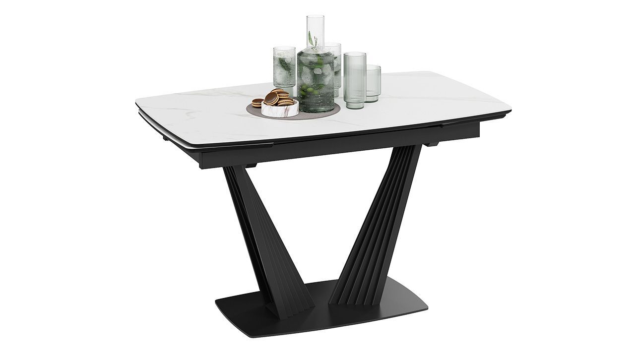 Стол кухонный обеденный раздвижной Черный муар/Керамика матовая белый мрамор 130(190)х80х76 см - это сочетание стиля, функциональности и качества, которое станет отличным дополнением к вашему интерьеру.