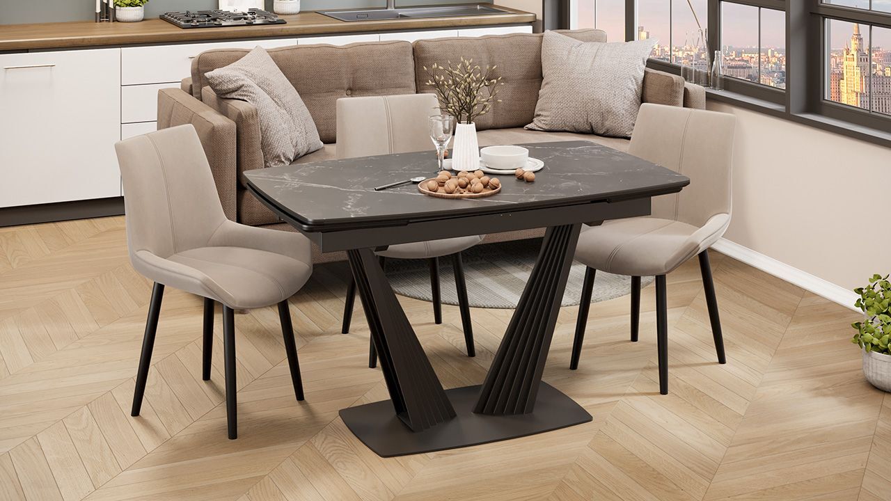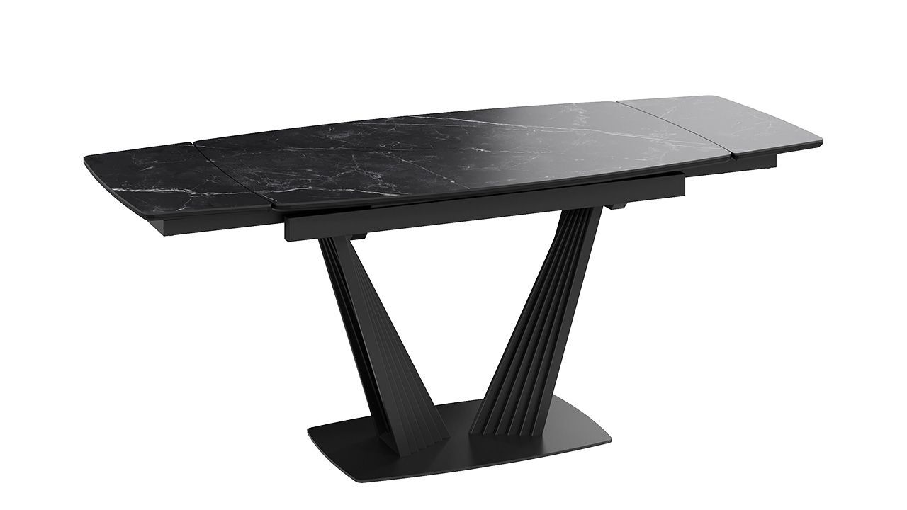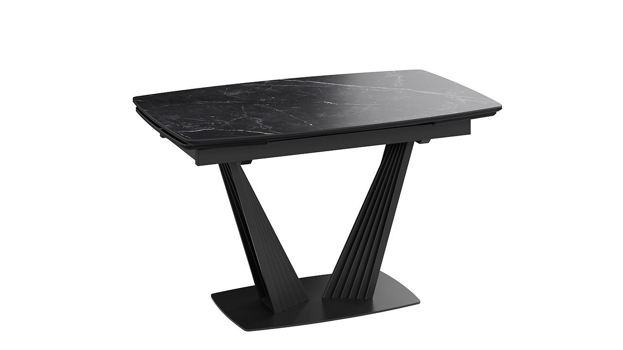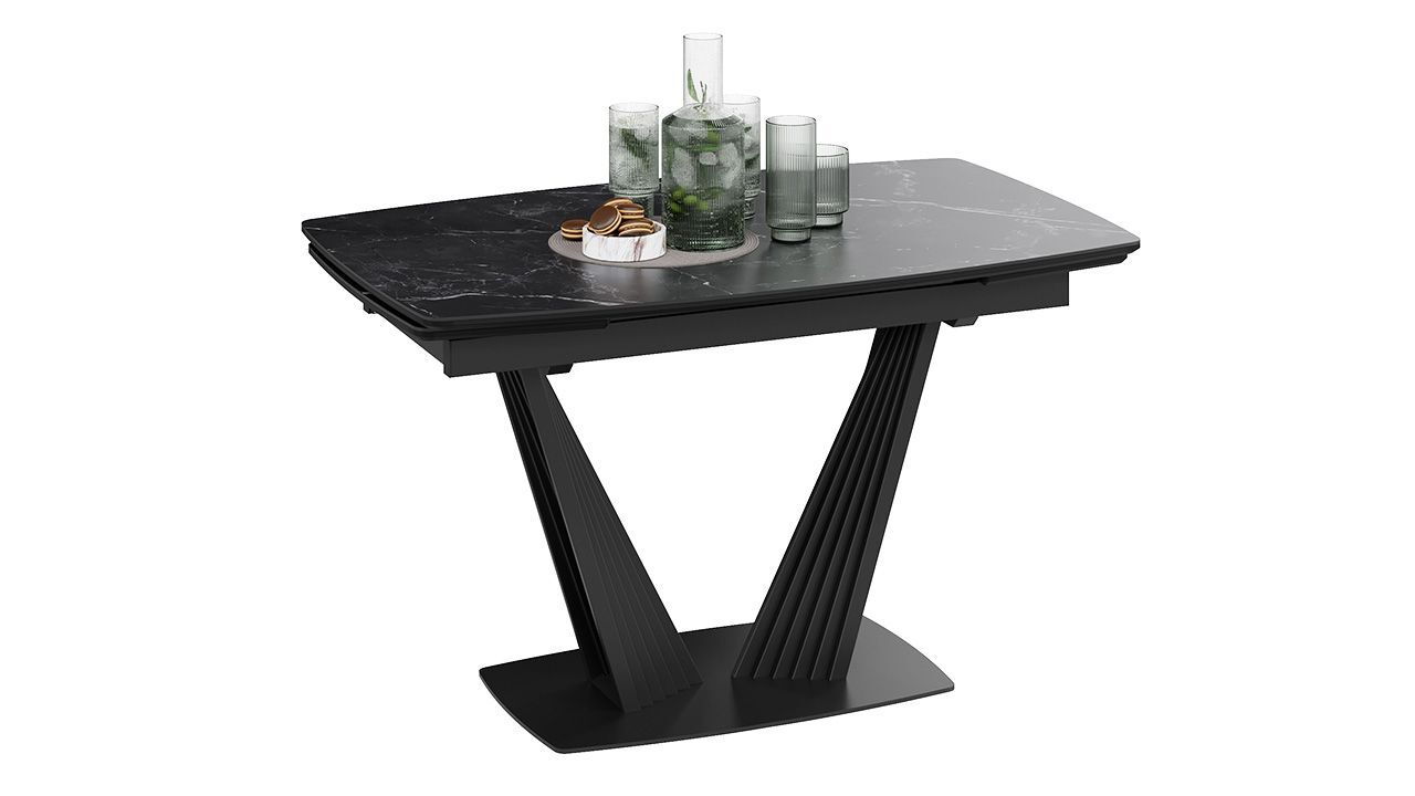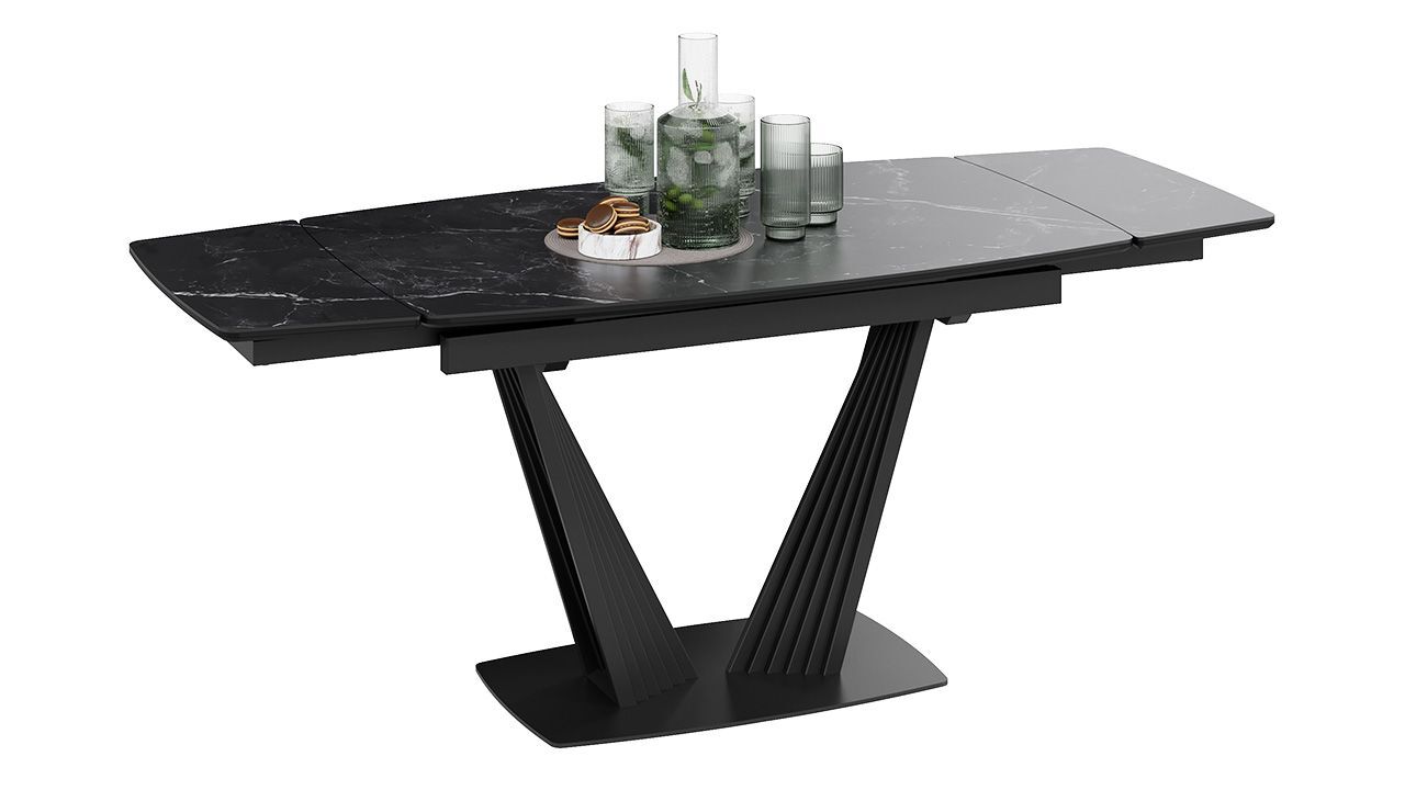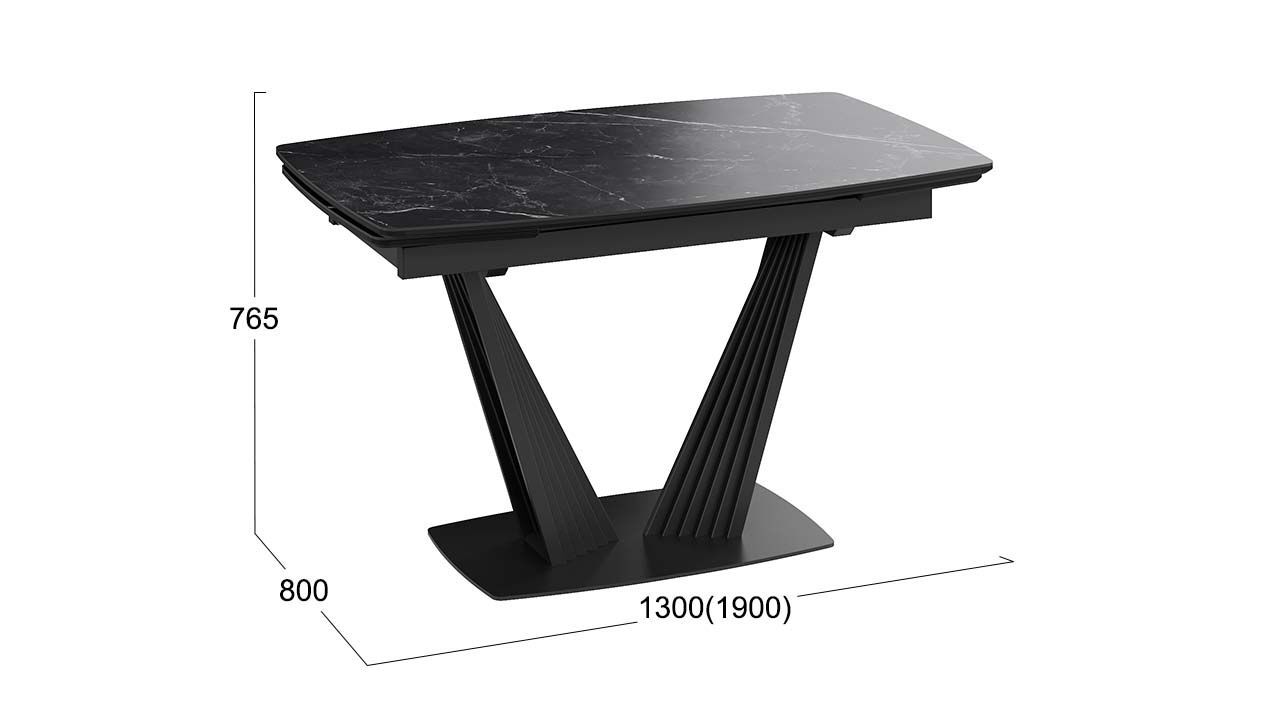 Стол кухонный обеденный раздвижной Черный муар/Керамика матовая черный мрамор 130(190)х80х76 см - это стильное и функциональное решение для вашей кухни или столовой, которое обеспечит комфорт и удобство во время приема пищи.