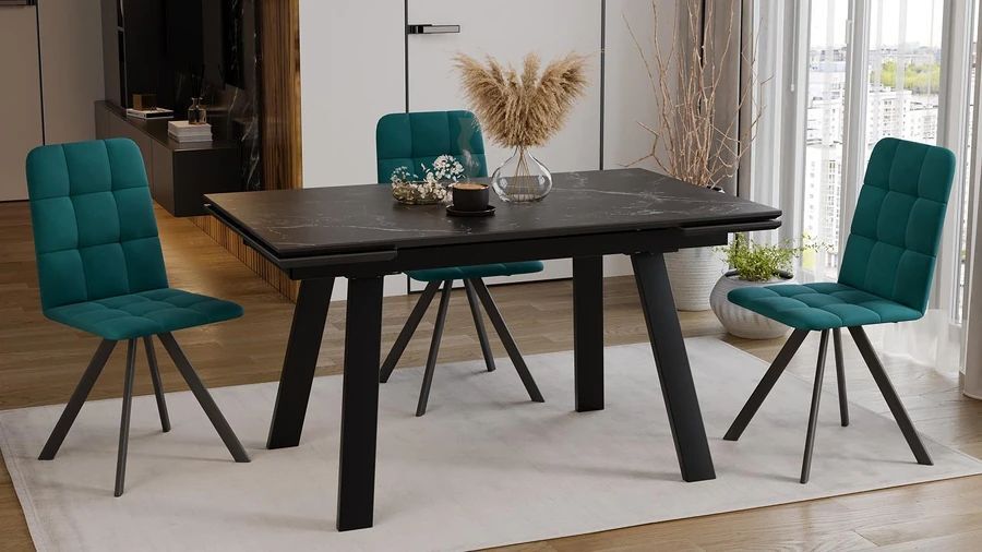 Стол обеденный с керамогранитом «Дэкстон» Тип 1 - элегантное решение для вашего интерьера. Сочетает в себе все необходимые качества для современного стола: практичность, долговечность и стильный внешний вид. Металлические ножки придают дополнительную выразительность модели и статусный характер, который подчеркивает ваш неповторимый стиль.