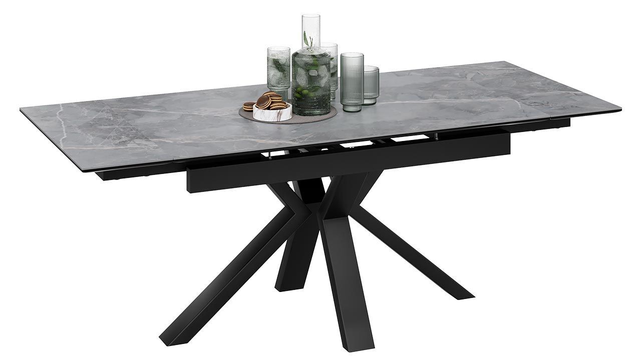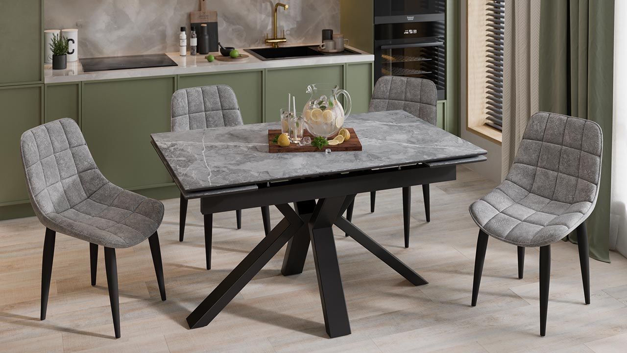 Стол кухонный обеденный раздвижной Черный муар/Керамика матовая серый мрамор 140(200)х85х76 см - это сочетание стиля, функциональности и качества, которое станет отличным дополнением к вашему интерьеру и сделает вашу кухню или столовую еще уютнее и комфортнее.