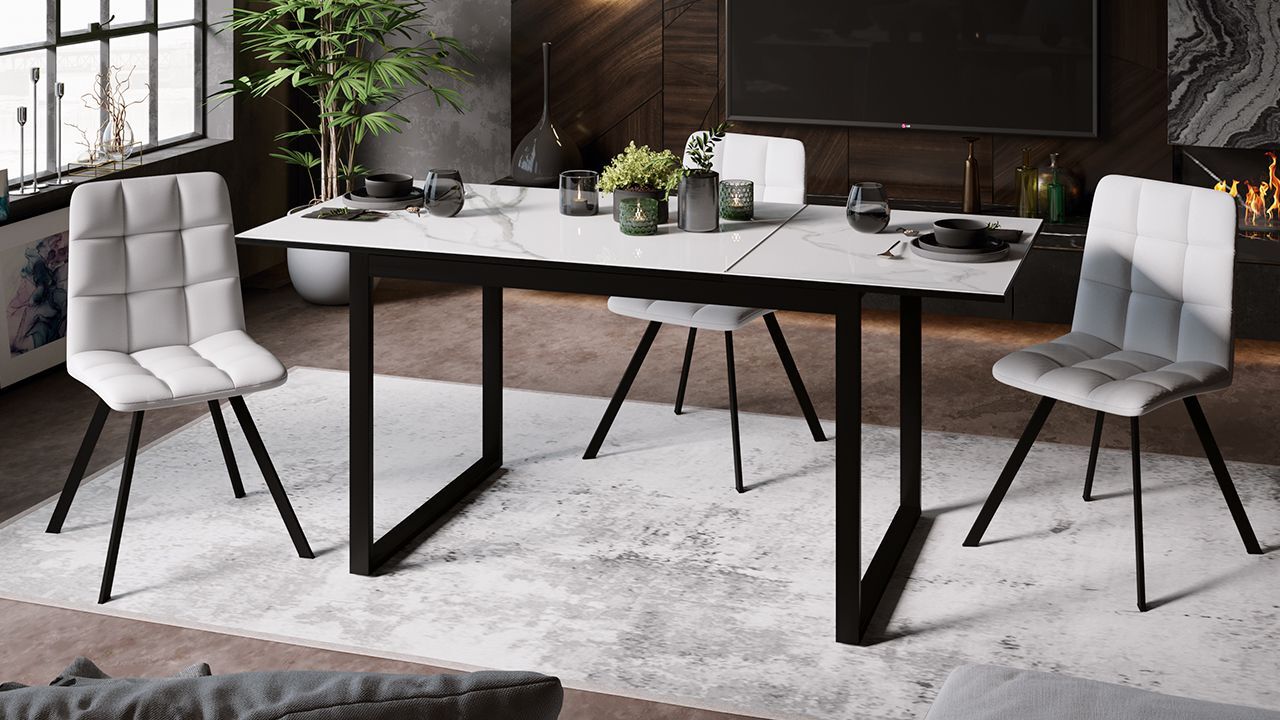Стол кухонный обеденный раздвижной Черный муар/Стекло белый мрамор 120(180)х80х77 см - это сочетание стиля, функциональности и качества, которое станет отличным дополнением к вашему интерьеру.