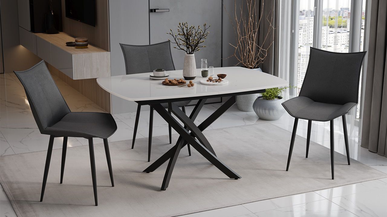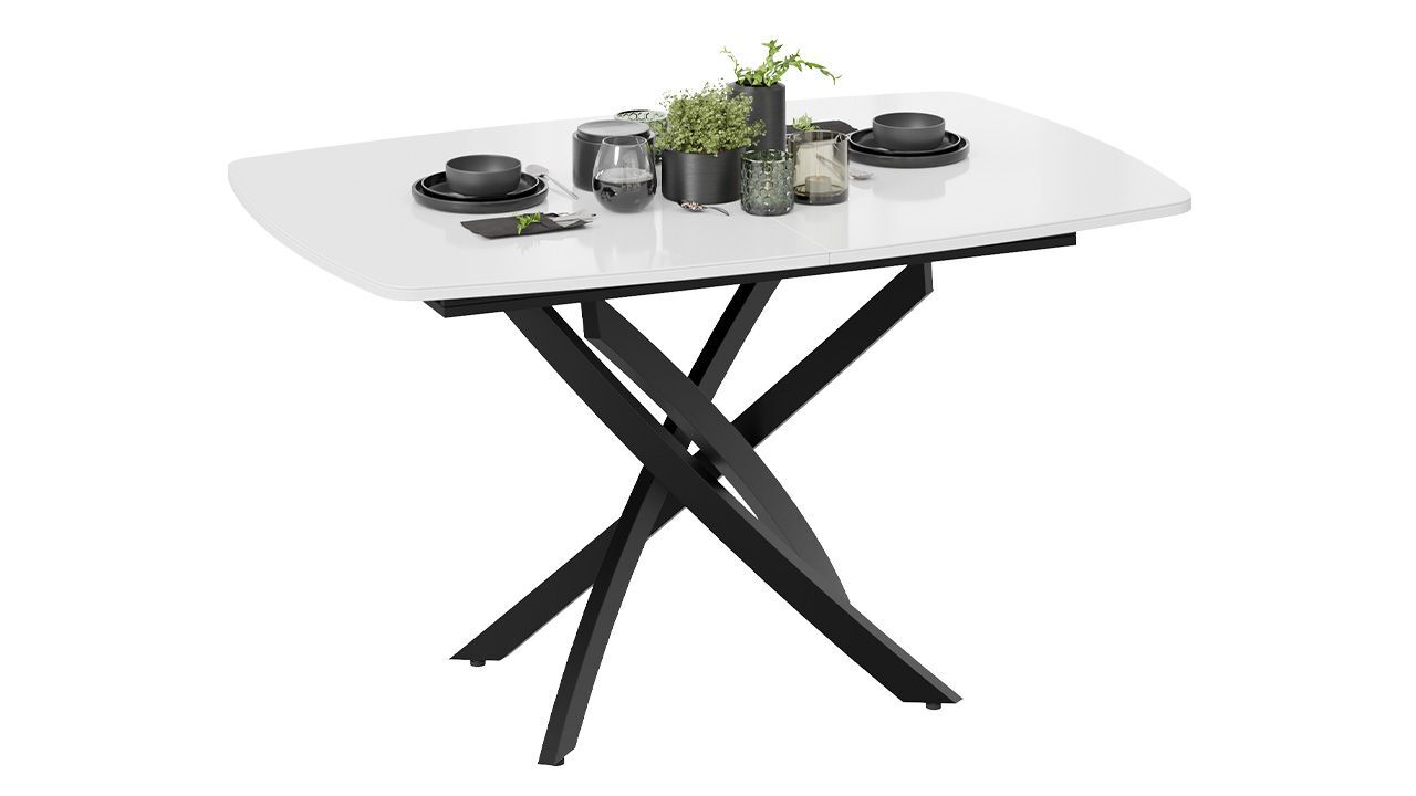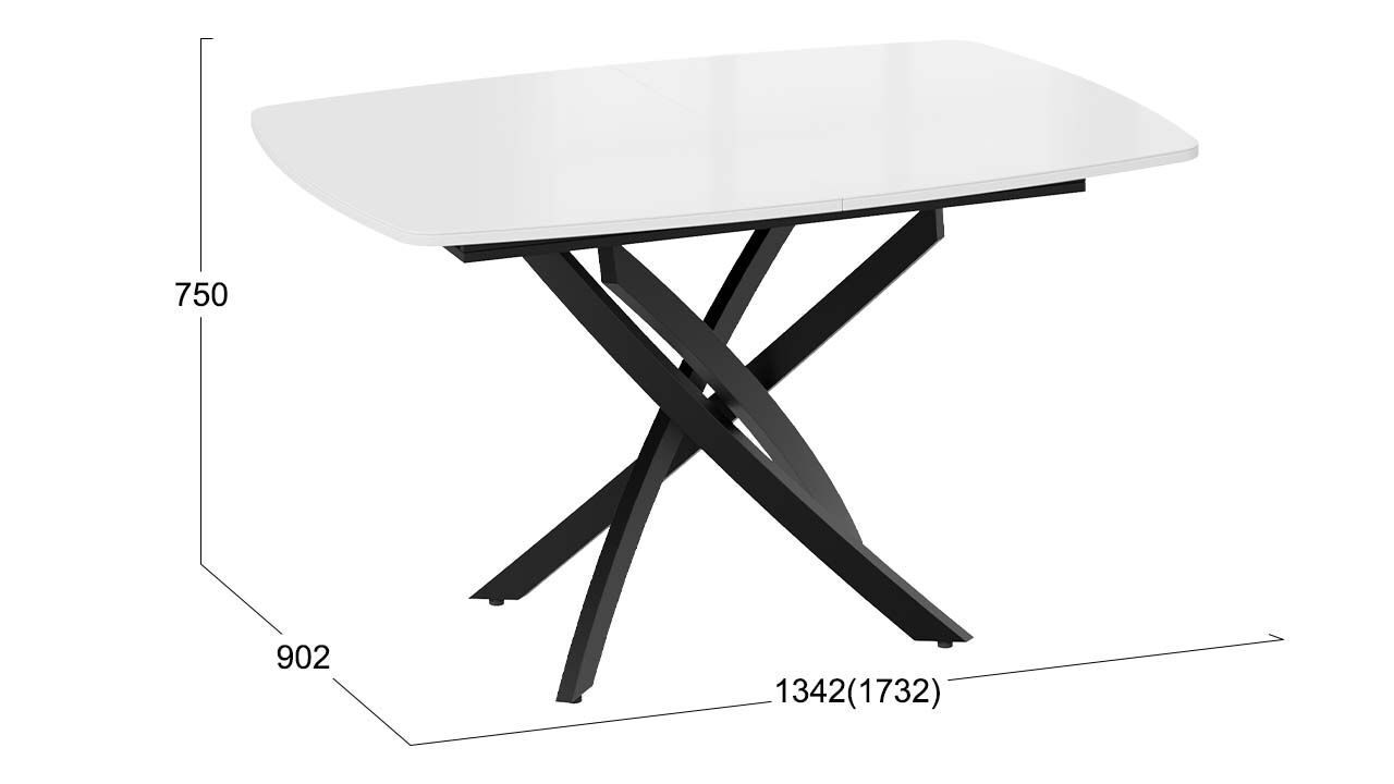 Стол кухонный обеденный раздвижной Черный муар/Стекло глянцевое белое 134(173)х90х75 см - стильный и функциональный выбор для вашей кухни или столовой.