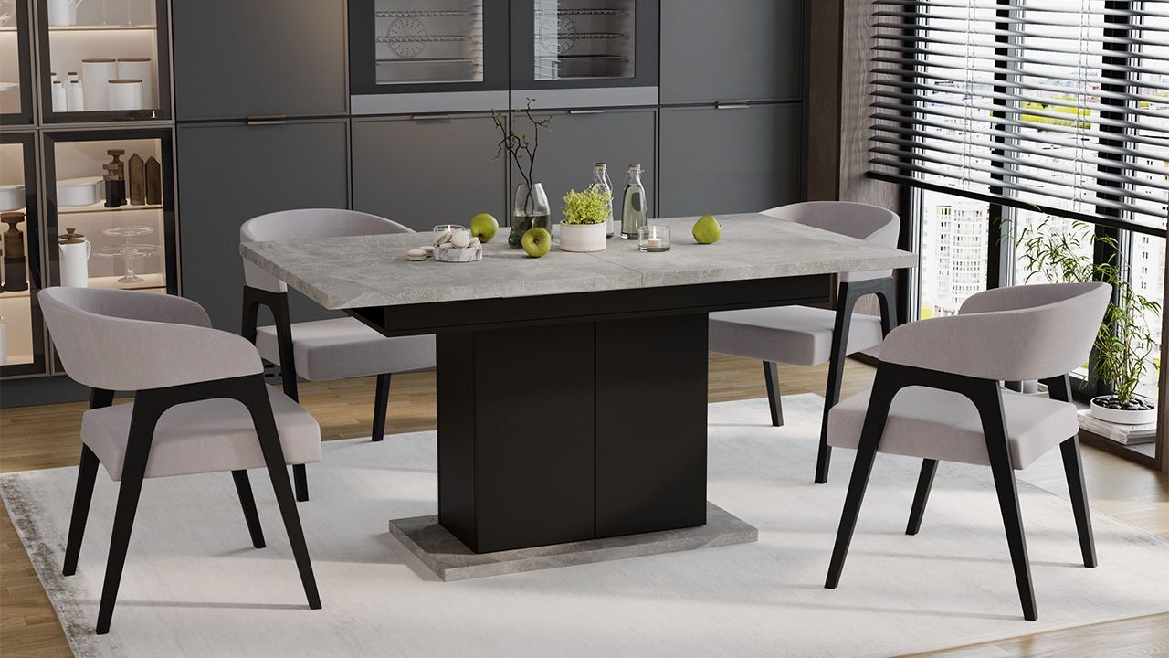 Стол кухонный обеденный раздвижной Черный/Ателье светлый 150 (201)х85х77 см
