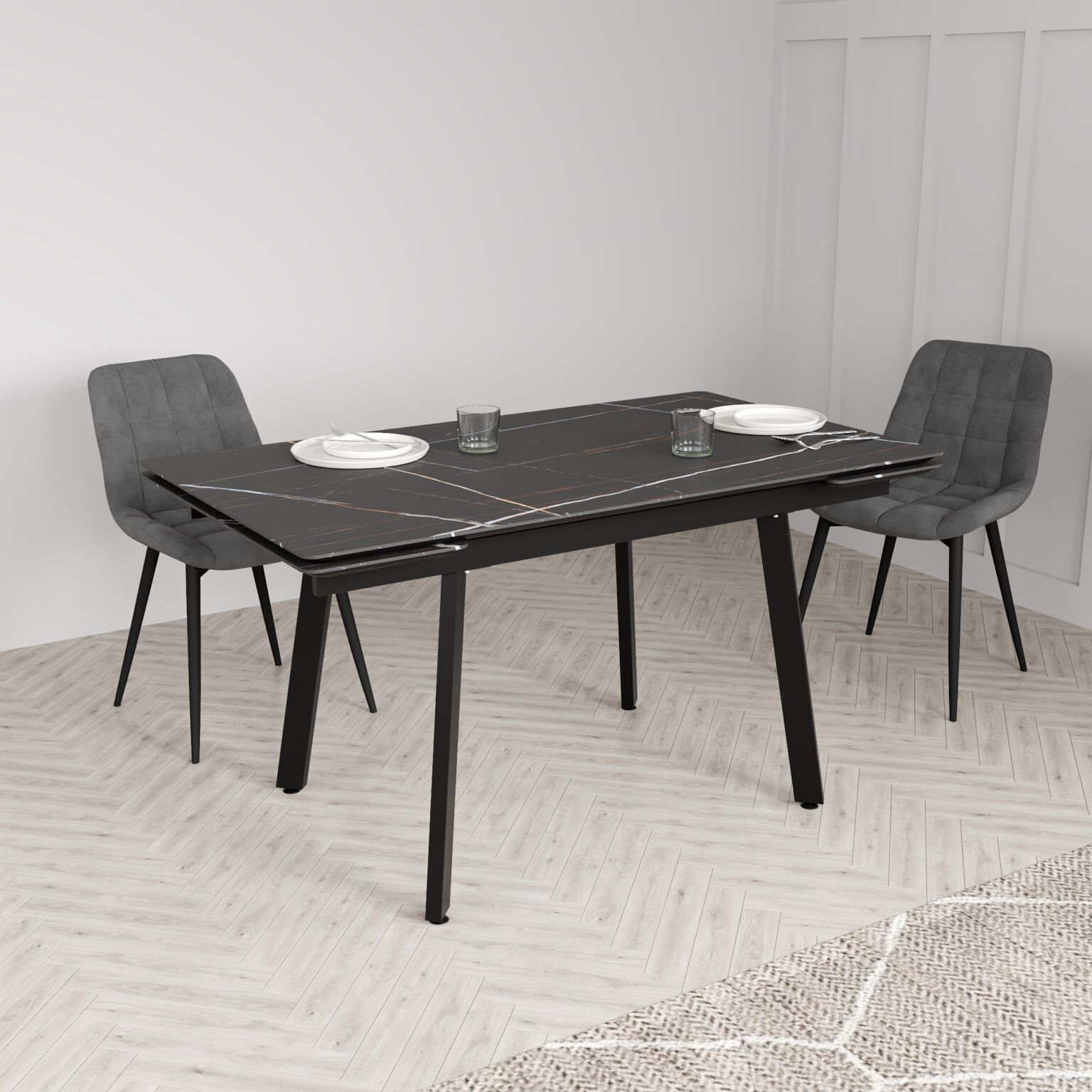 Стол кухонный обеденный раздвижной Мрамор Черный 140х80х74 см - это элегантное и функциональное решение для вашей кухни или столовой.