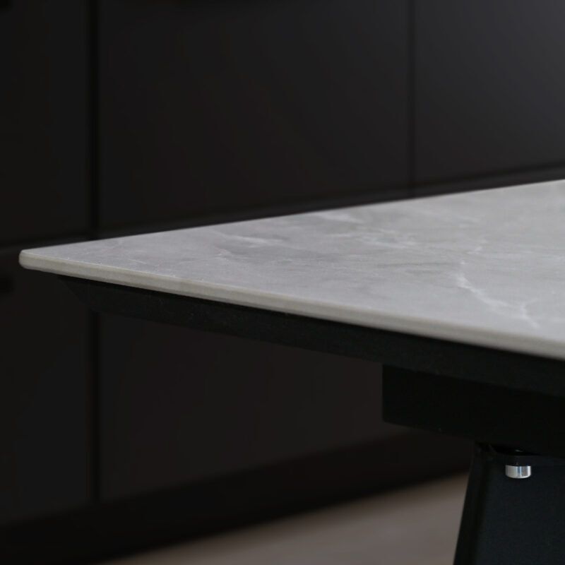 Стол имеет удобные размеры 100х80х74 см, что позволяет разместить за ним до 6 человек. Прямоугольная форма столешницы и материал столешницы из керамогранита обеспечивают прочность и долговечность изделия. Каркас стола выполнен из металла, что гарантирует его устойчивость и надежность.