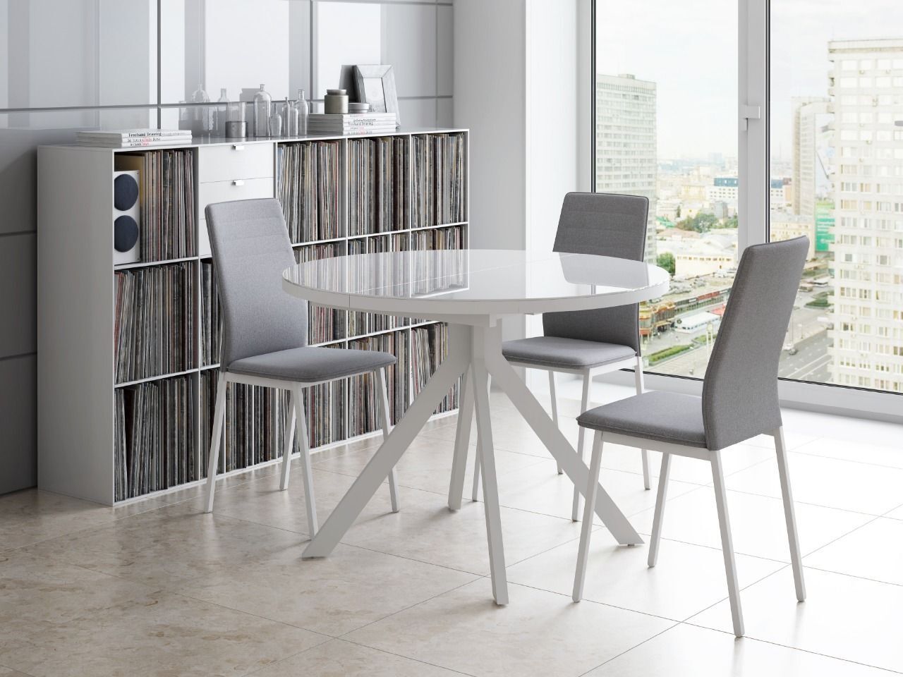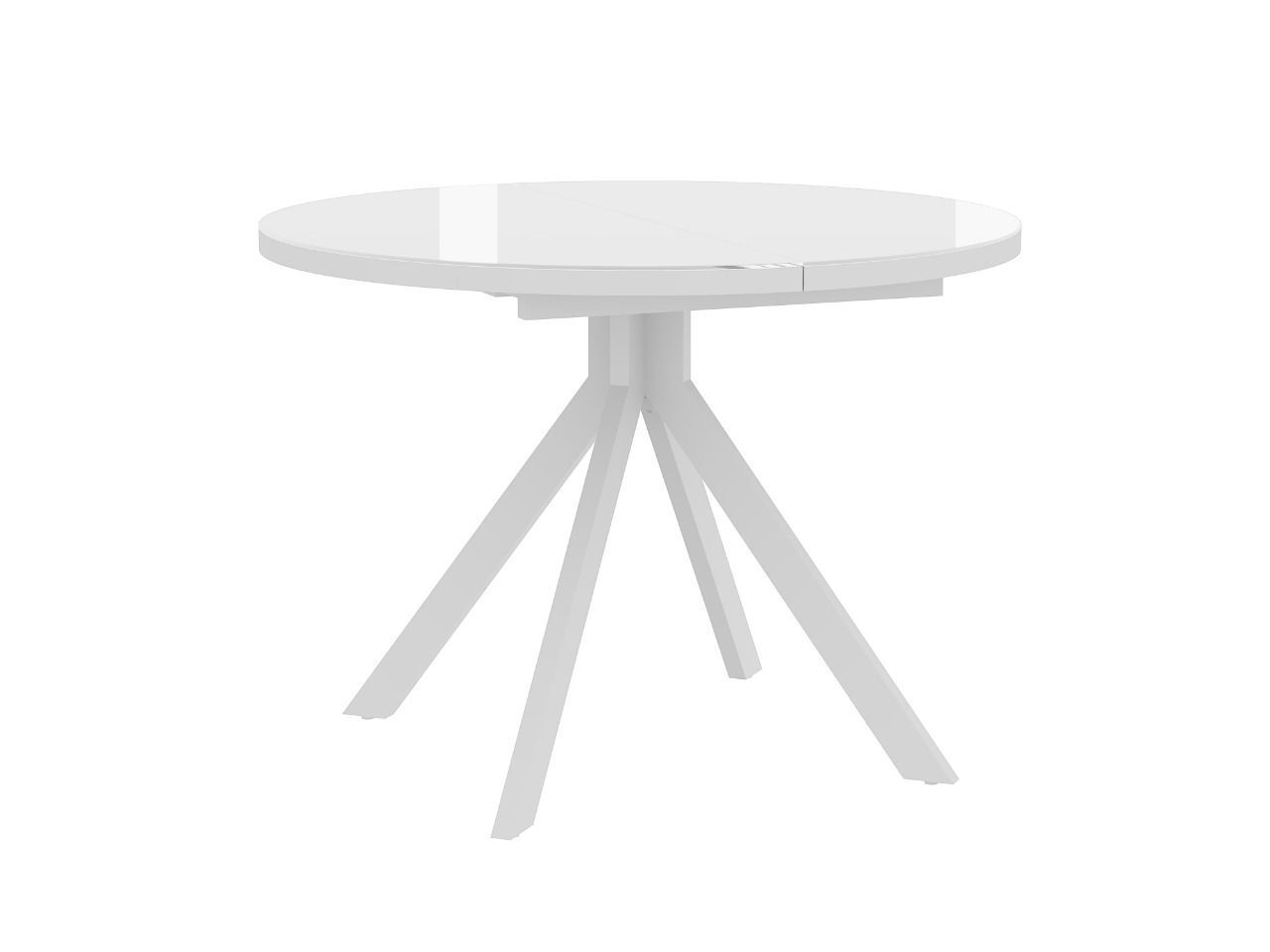 Стол круглый раздвижной с глянцевым стеклом "Толедо-110" (Белый оптивайт/Белый):
