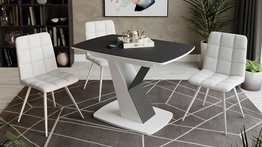 Современное цветовое оформление. В оформлении имеется два варианта декора и это обеспечивает универсальность модели. Текстуры «Белый» и «Дуб крафт золотой» гармонично сочетаются с закаленным стеклом, которое имеет матовую поверхность «Черный графит». Благодаря таким цветовым решениям стол выглядит брутально и оригинально.