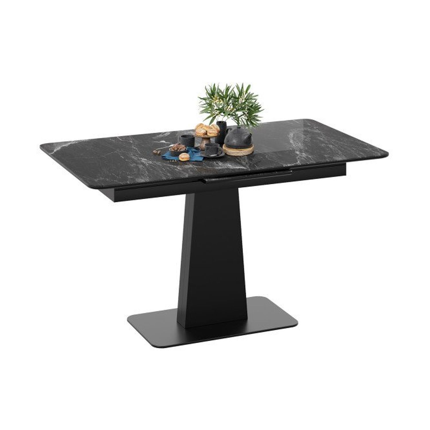 Функциональность. Столешница оснащена раздвижным синхронным механизмом с автоматическим подъемом вставки стола "BAUT", при необходимости ее можно с легкостью разложить, увеличив поверхность в размерах. Форма опоры и основания позволяет без труда разместиться с любой стороны стола, облегчая посадку. Процесс сборки стола минимальный, столешница поставляется уже в собранном виде, остается только прикрутить опоры.