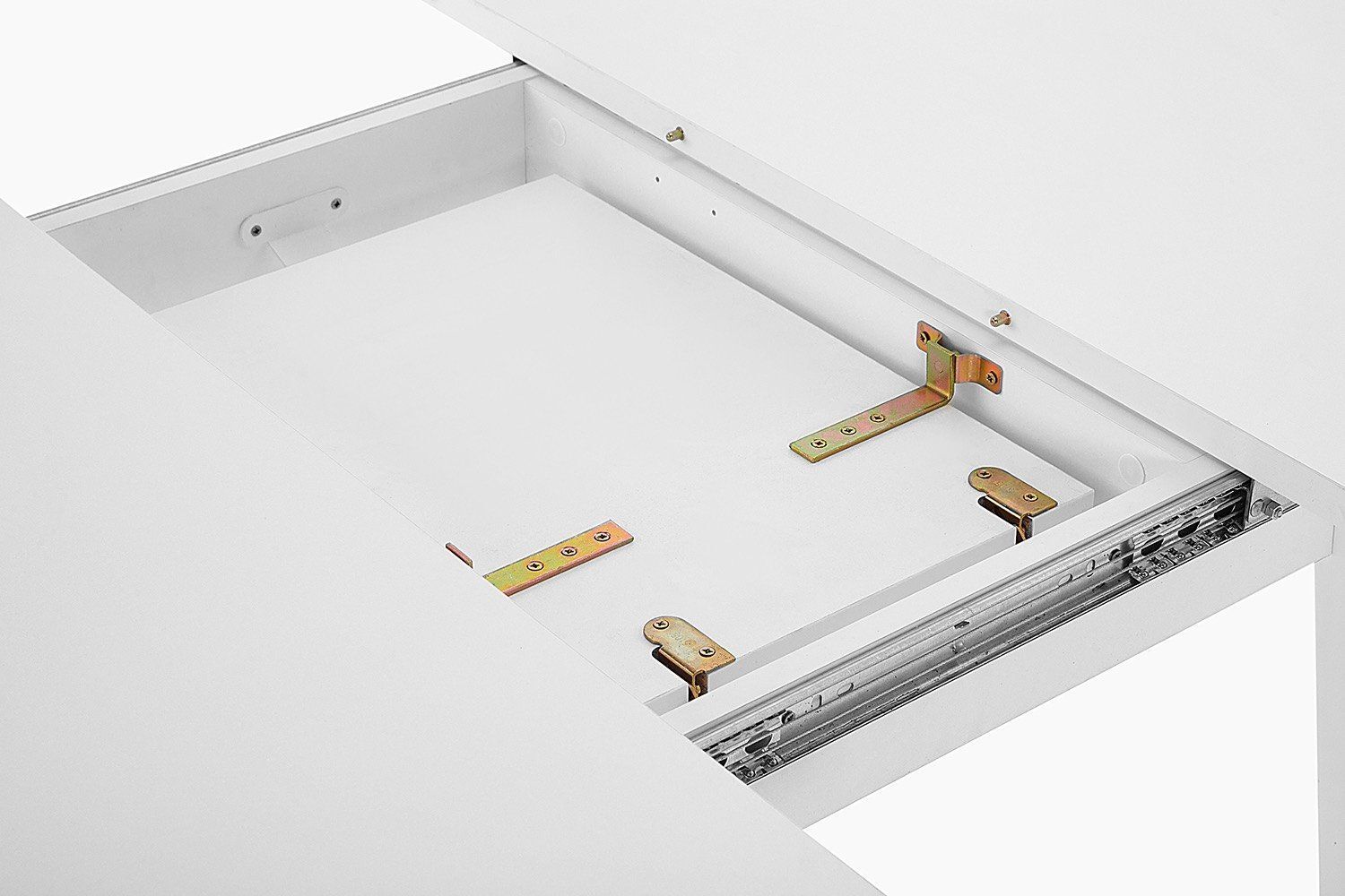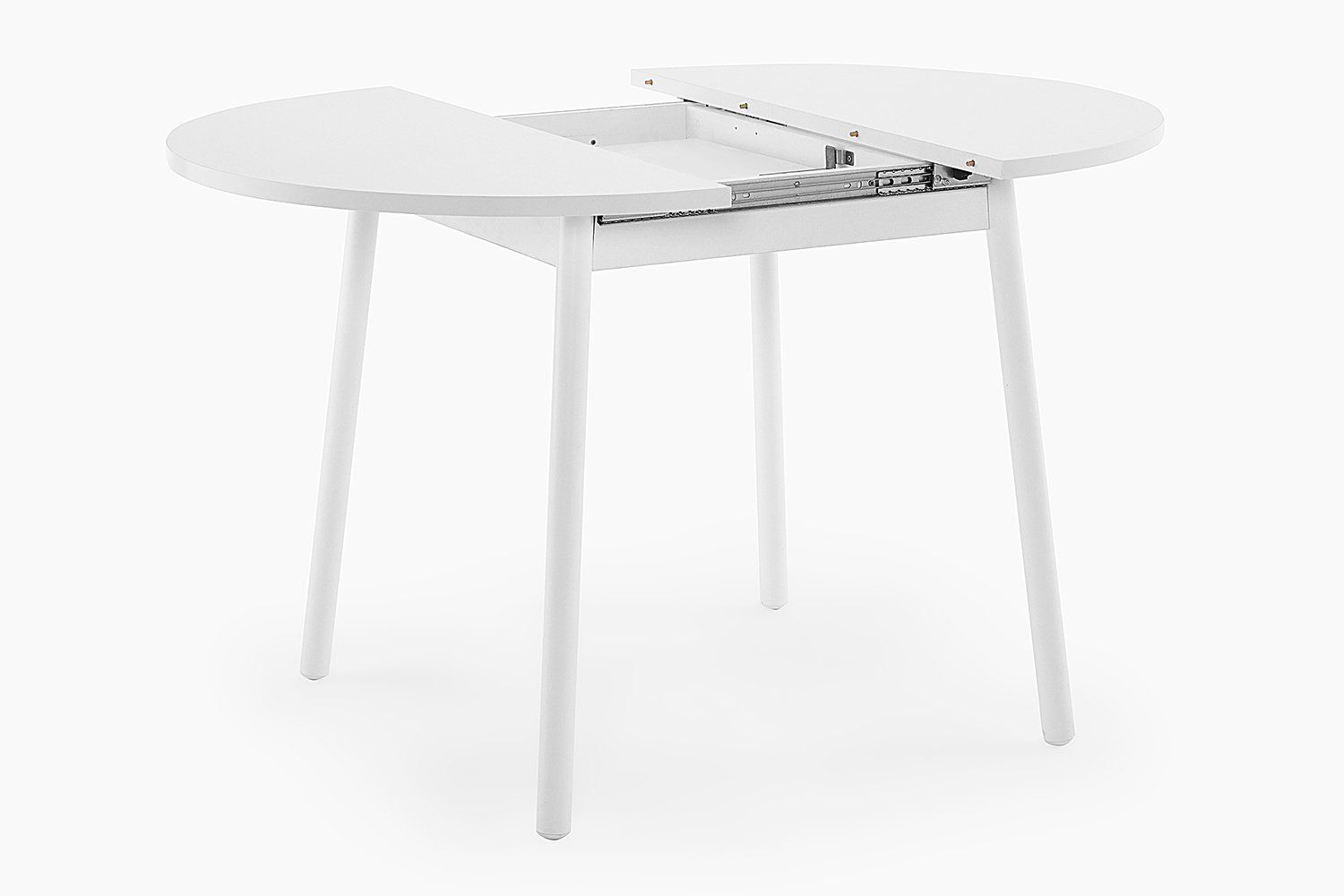 Раздвижной стол Форли — белоснежная модель, уместная в любом интерьере. Белый цвет универсален и всегда вносит в дизайн помещения свежие нотки. Стол компактен, но благодаря раздвижной конструкции его столешницу можно увеличить на треть. Металлическое основание — гарантия прочности и долговечности конструкции.