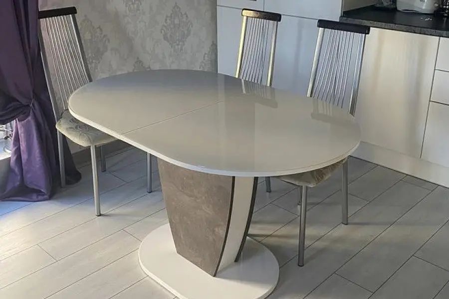 Функциональность. Стол имеет синхронный механизм раздвижения, позволяющий в разложенном виде разместить большое количество людей. Площадь столешницы увеличивается за счет центральной вставки «бабочка», которая укладывается вручную.