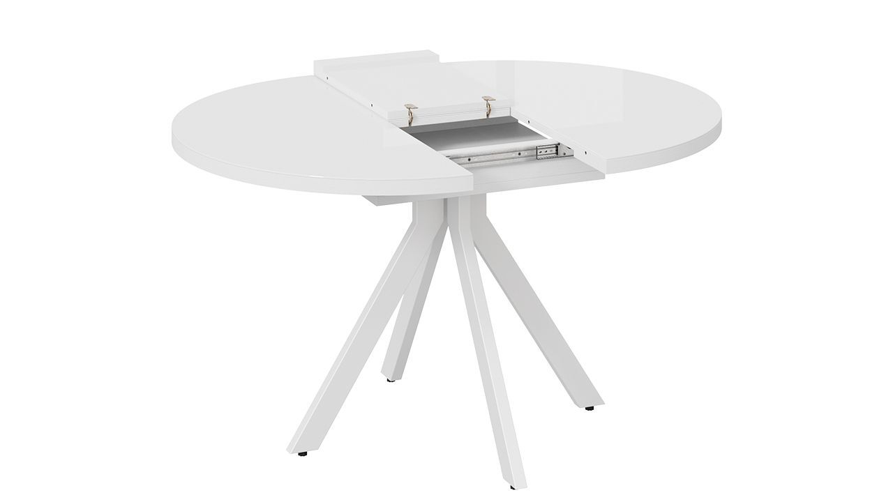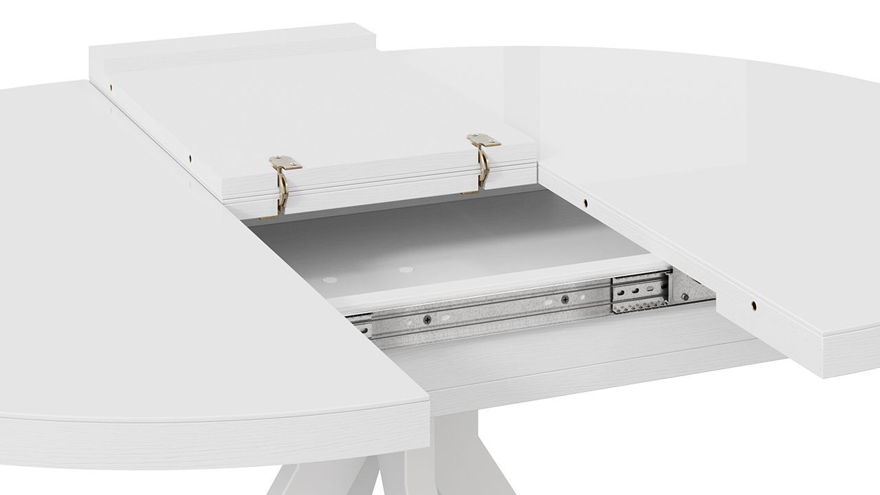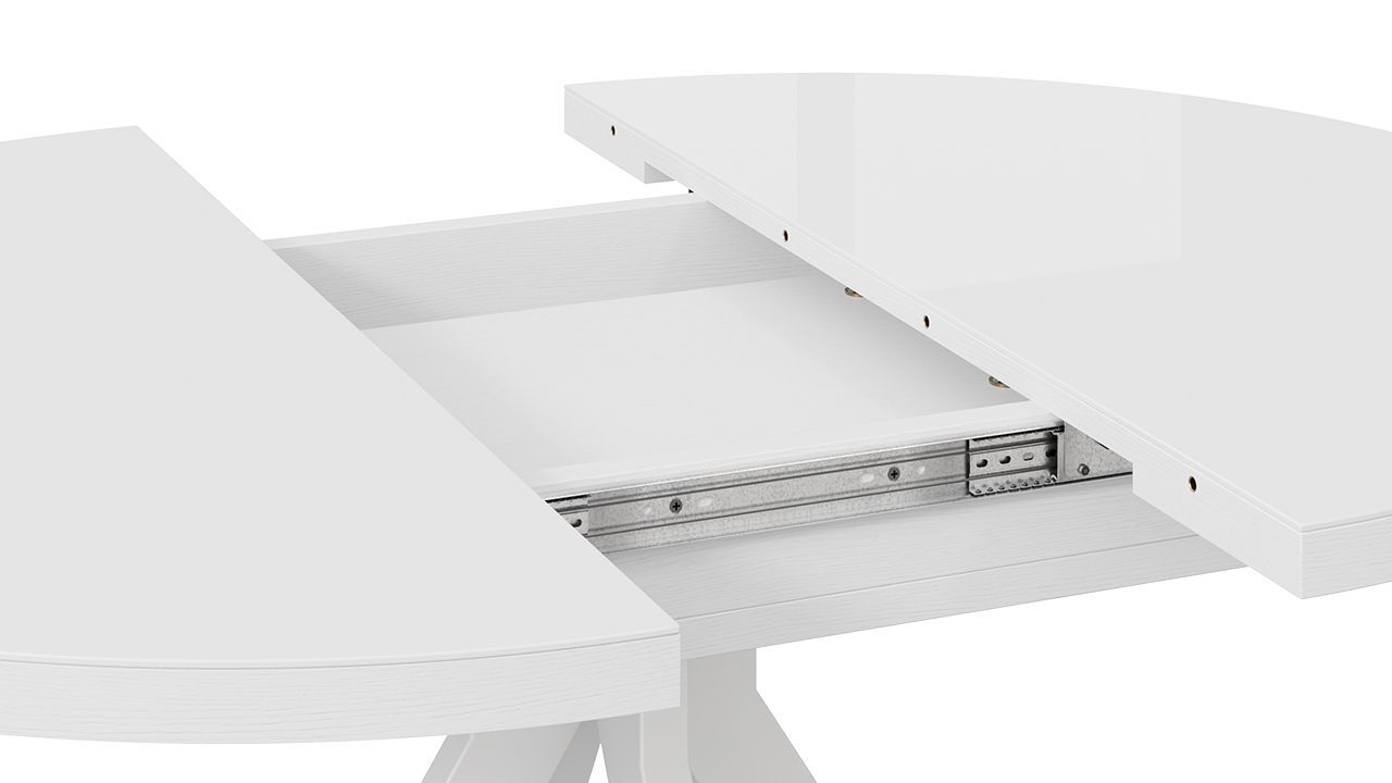 Стол обеденный раздвижной Стокгольм выполнен из качественных материалов, что обеспечивает его долговечность и надежность. Белая глянцевая столешница придает столу легкость и изящность, а стеклянная поверхность с глянцевым эффектом добавляет ему современности и элегантности.