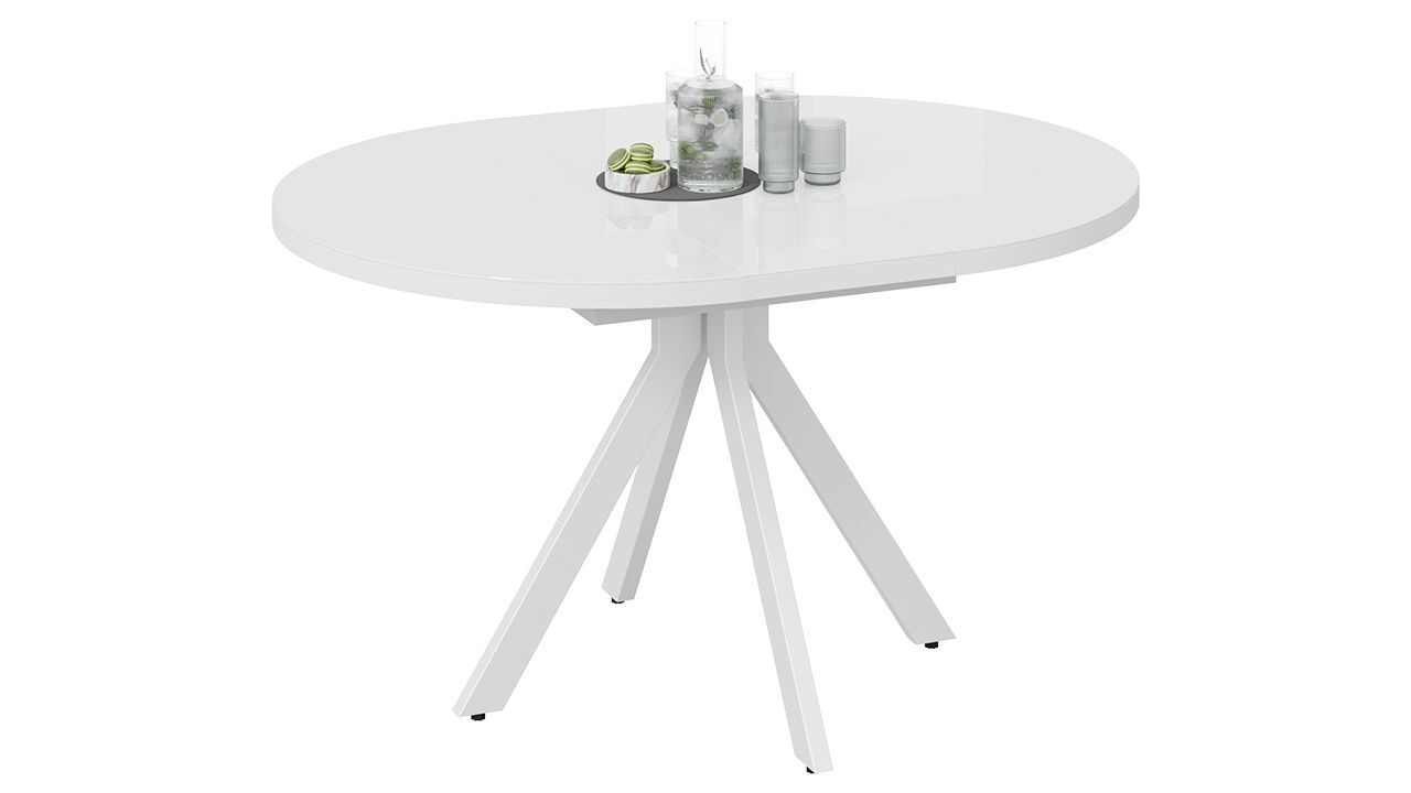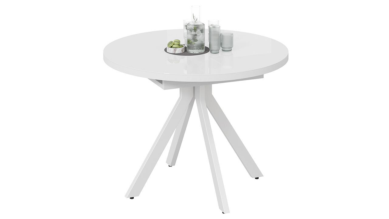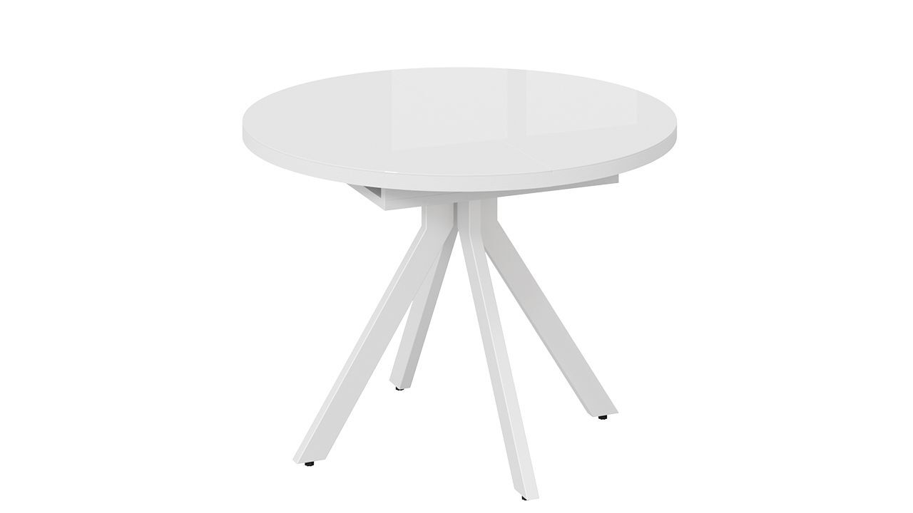 Стол обеденный раздвижной Стокгольм Белый муар, Стекло глянцевое белое