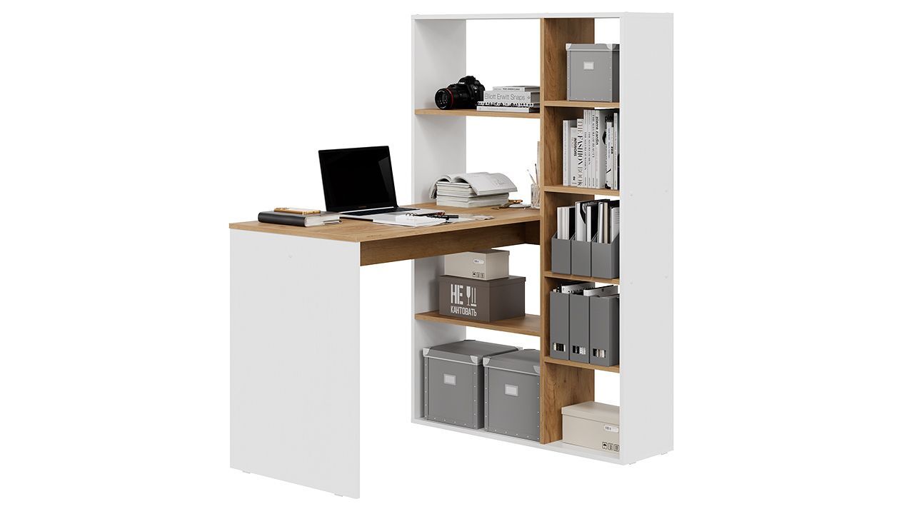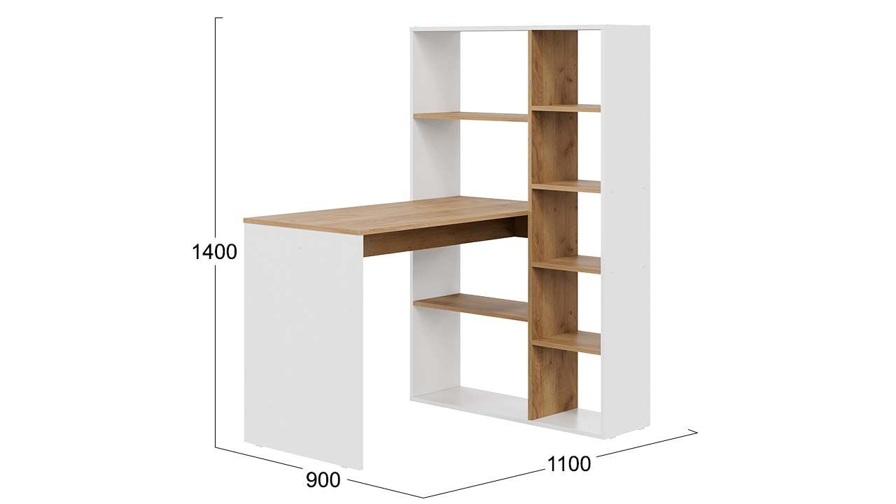 Стол письменный с полками и шкафом Дуб Крафт золотой/Белый Ясень 90х110х140 см - это сочетание функциональности и эстетики.