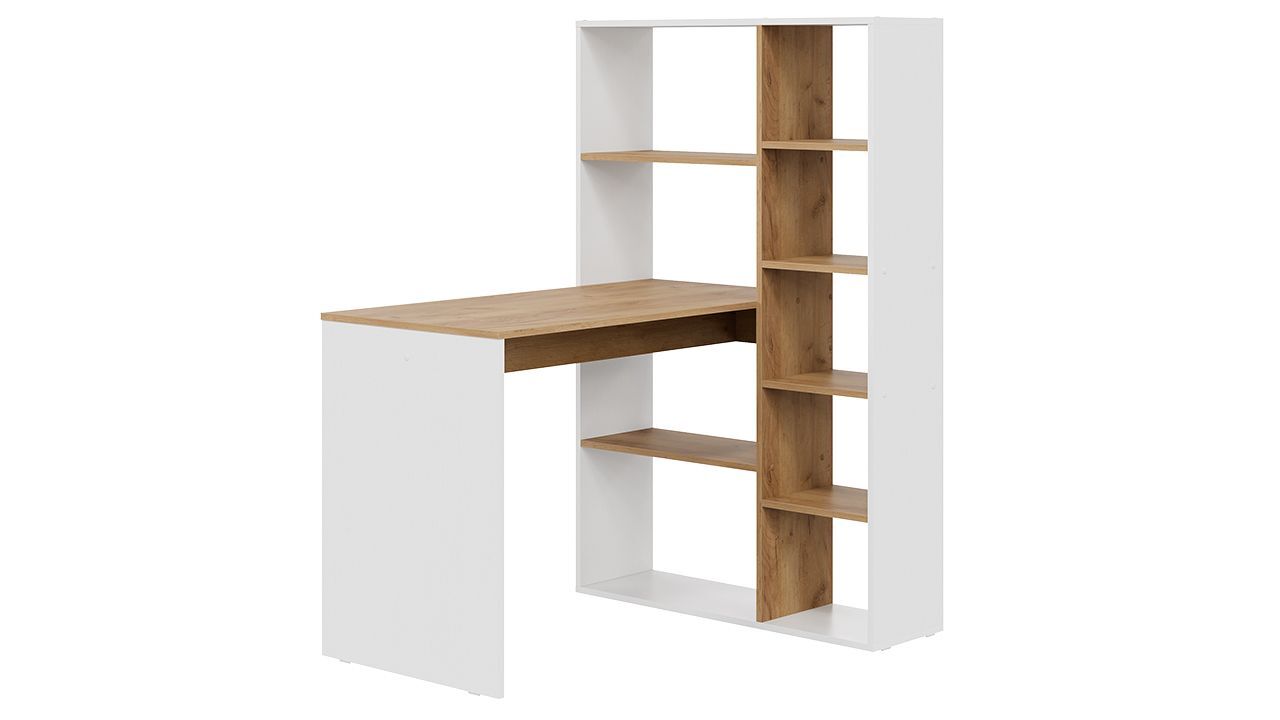 Стол письменный с полками и шкафом Дуб Крафт золотой/Белый Ясень 90х110х140 см - это не только функциональный, но и стильный элемент интерьера, который станет отличным решением для любого помещения.