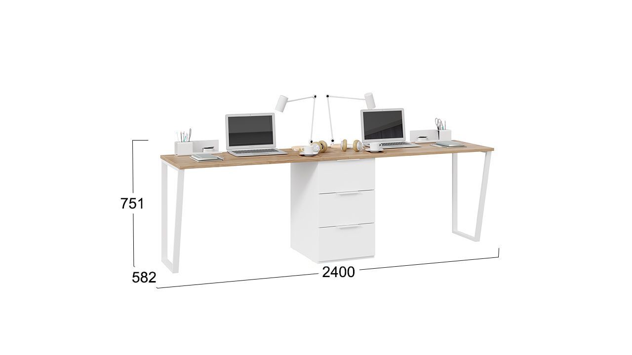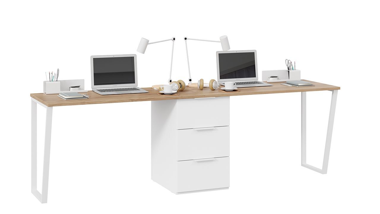 Стол письменный с ящиками Белый Жемчуг/Яблоня Беллуно/Белый софт 240х58,2х75,1 см – это сочетание стиля и функциональности. Благодаря своему современному дизайну, стол впишется в любой интерьер, будь то офис, школа, дом или дача.