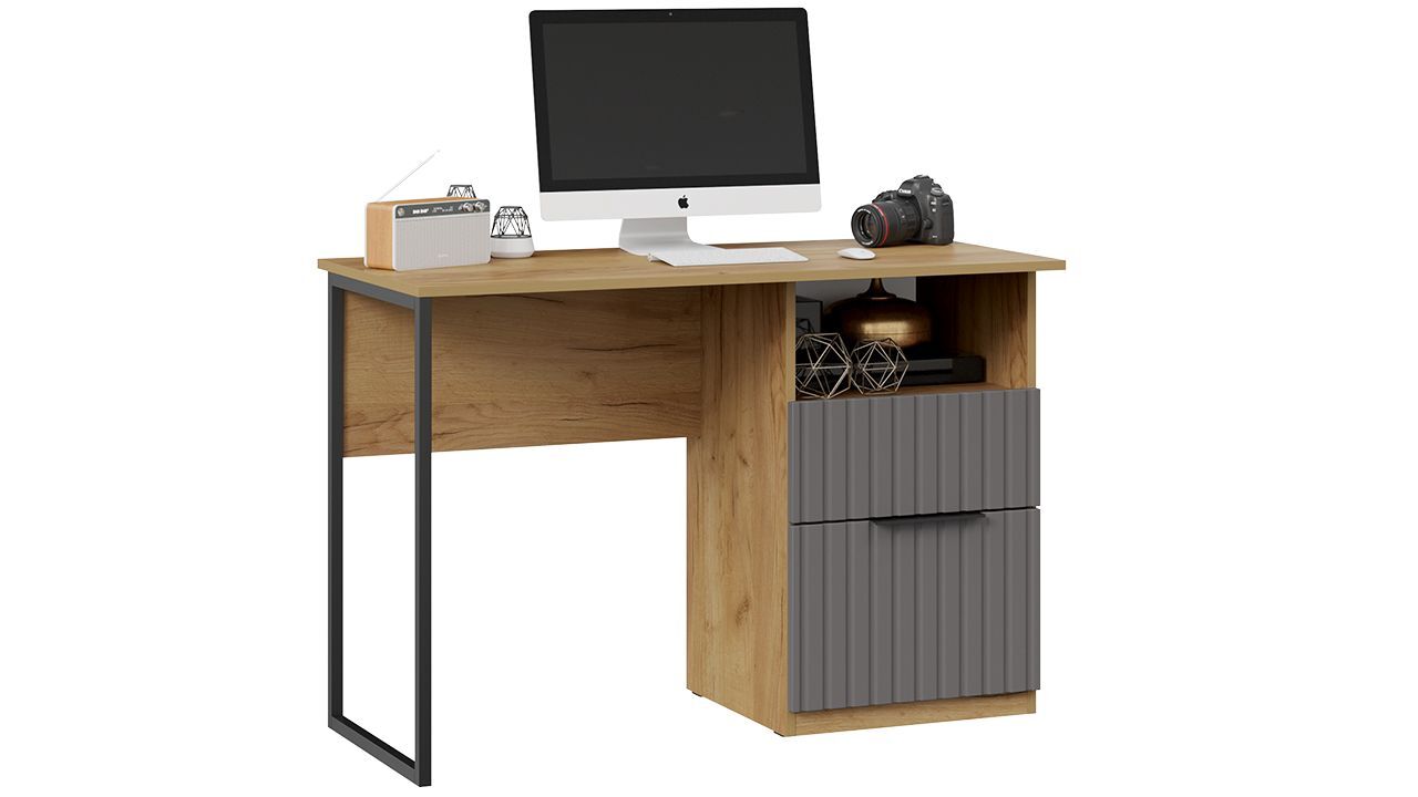 Выбирая письменный стол с ящиками и полками Дуб Крафт золотой/Графит матовый, вы получаете стильное, функциональное и надежное решение для вашего рабочего пространства.