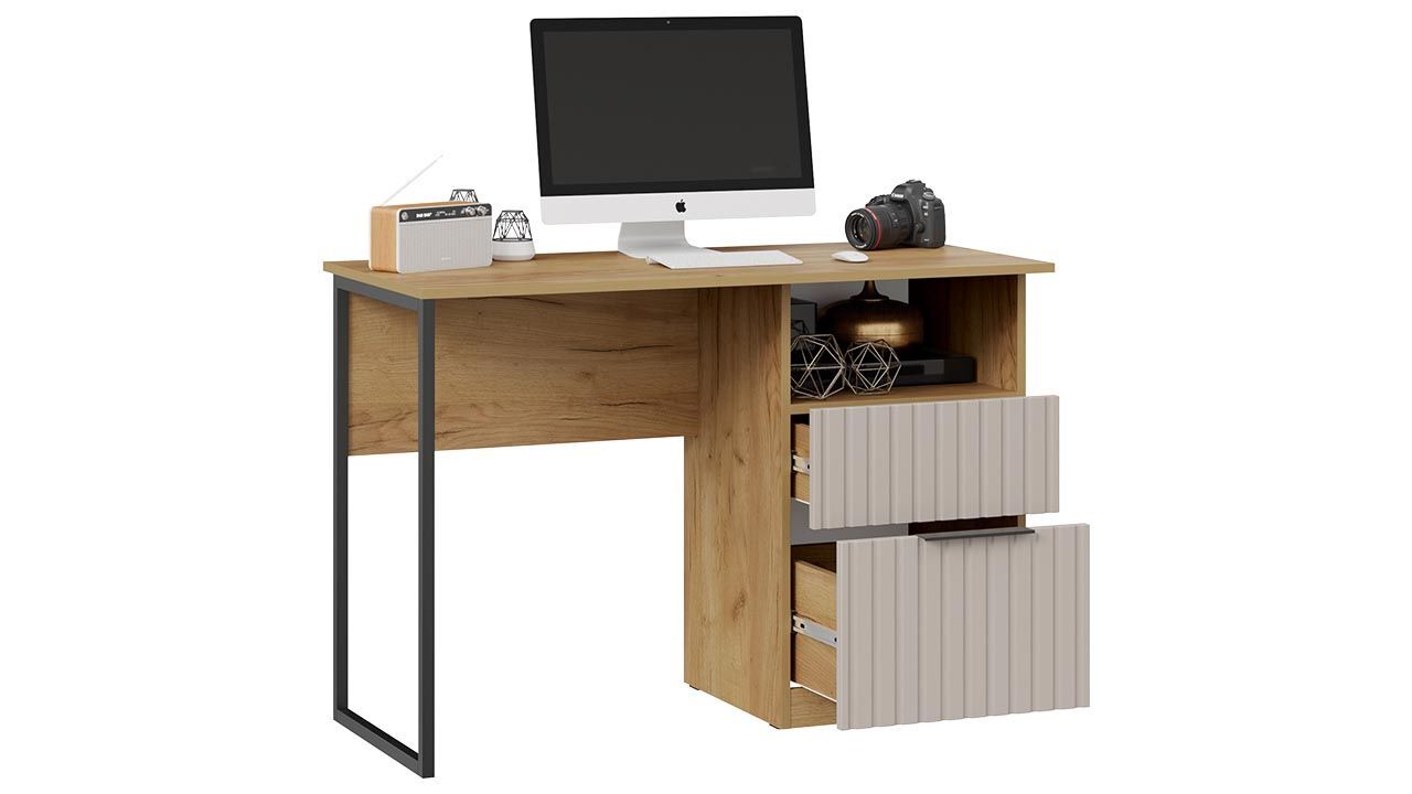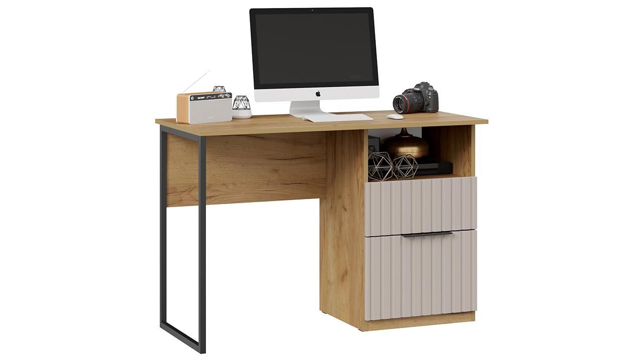 Стол письменный с ящиками Дуб Крафт золотой/Мокко матовый - это функциональный и стильный элемент интерьера, который станет незаменимым помощником в организации рабочего пространства.