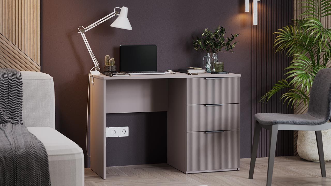 Стол письменный с ящиками Глиняно серый/Холст латте - это стильное и практичное решение для организации рабочего пространства в любом помещении.