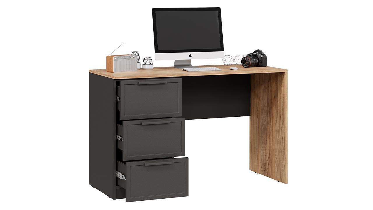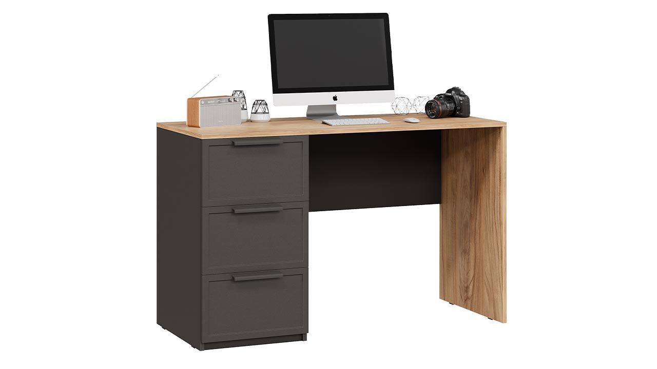 Письменный стол с ящиками: Серый вулкан/Фон Серый/Яблоня Беллуно.