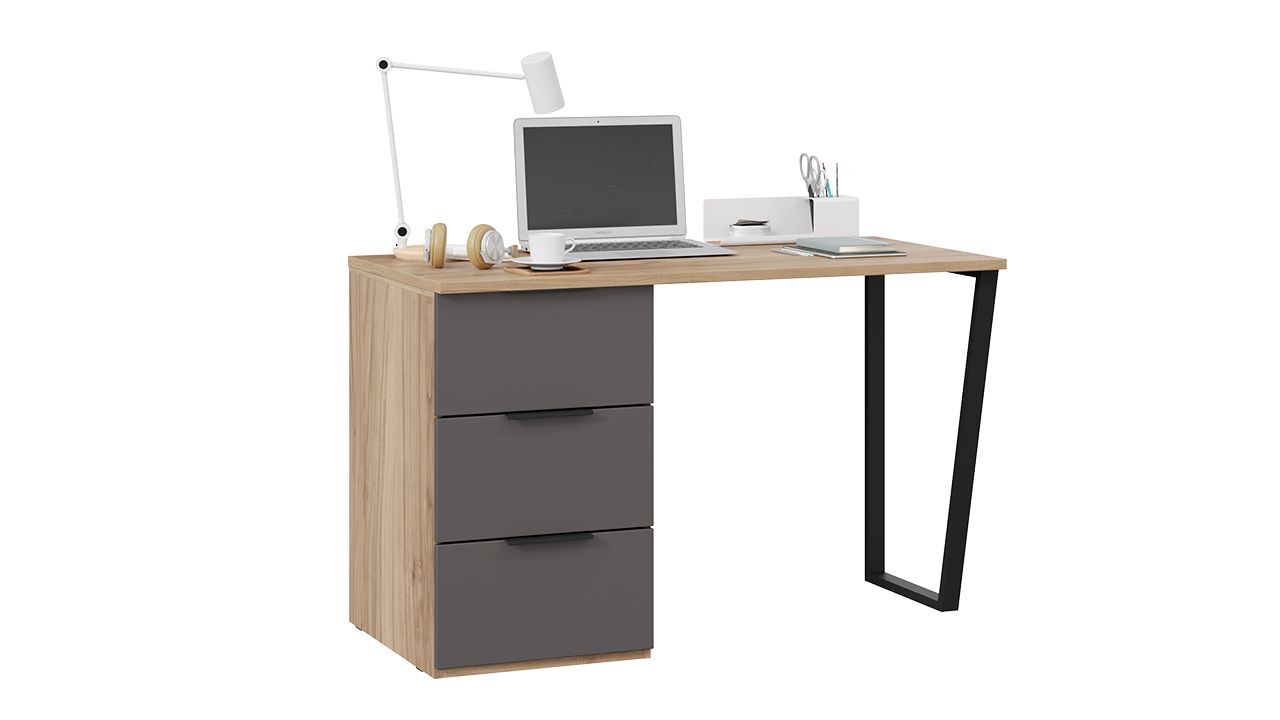 Письменный стол с ящиками Яблоня Беллуно/Графит софт представляет собой стильное и функциональное решение для организации рабочего пространства.
