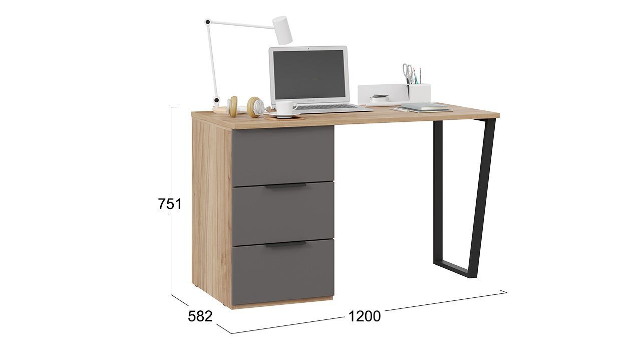 Стол имеет размеры 120х58,2х75,1 см, что обеспечивает достаточное пространство для размещения всех необходимых принадлежностей. Благодаря прямому дизайну, стол не занимает много места в комнате.
