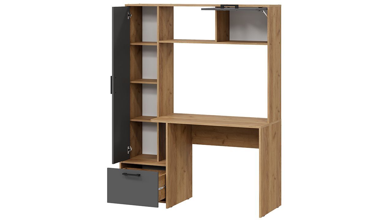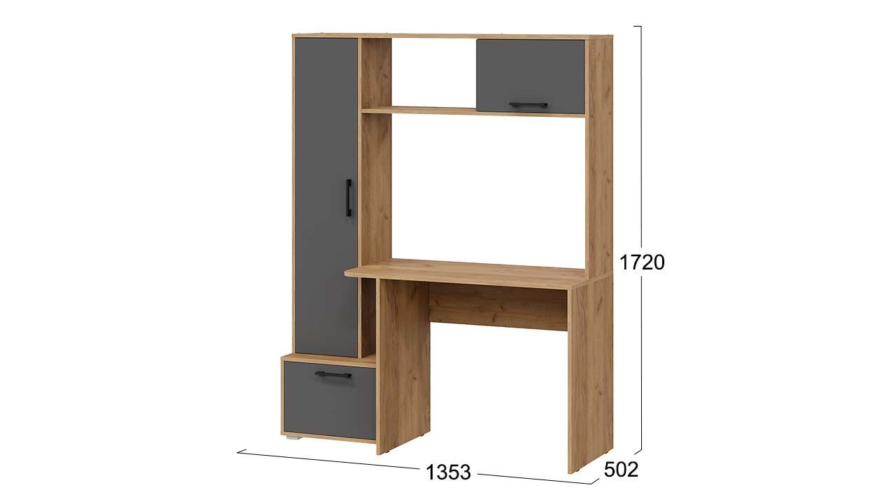Стол оборудован надстройкой, которая включает в себя семь полок. Это позволяет разместить все необходимые аксессуары и документы, обеспечивая порядок и доступность.