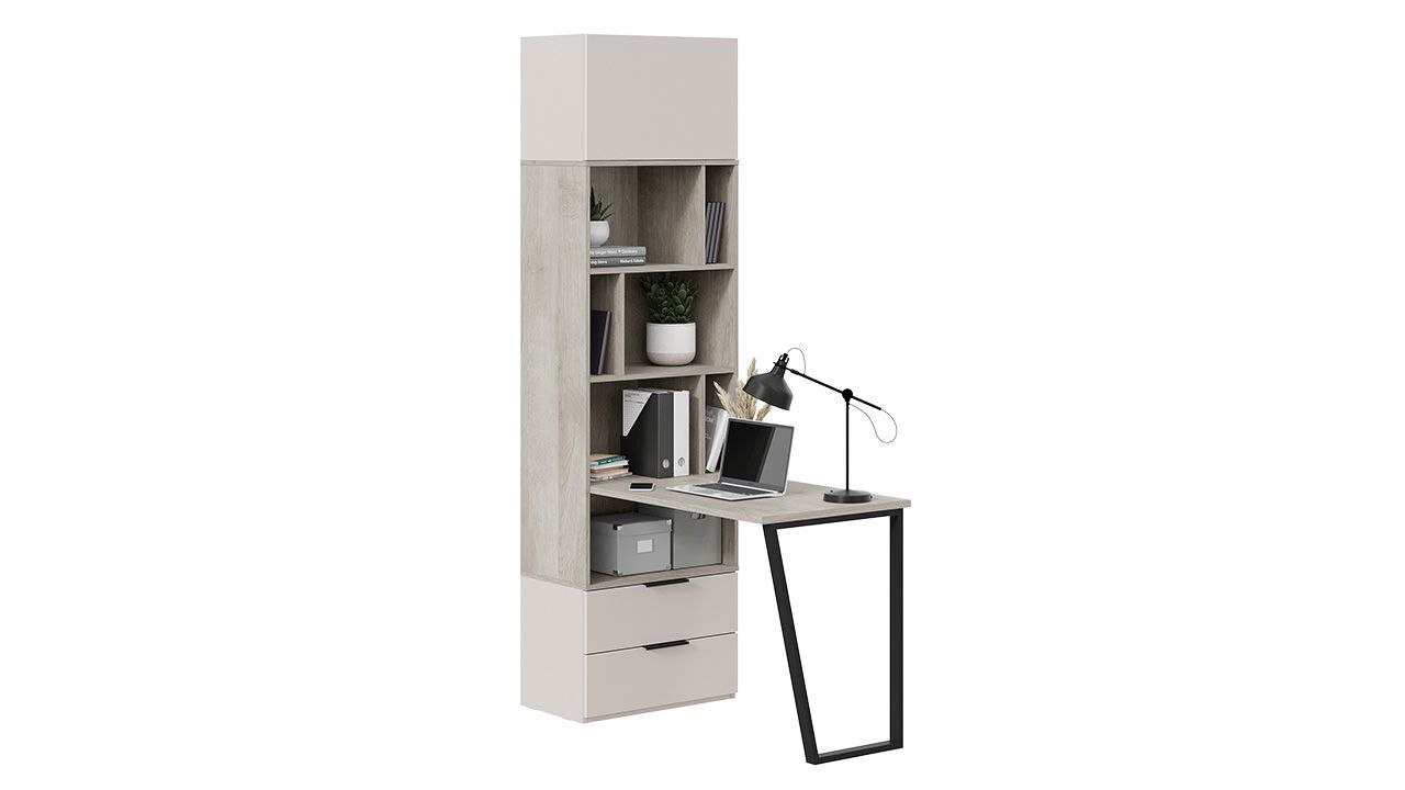 Письменный стол угловой с ящиками и шкафом "Кашемир матовый/Баттл Рок/Кашемир сатин" - это современное и функциональное решение для организации рабочего пространства.