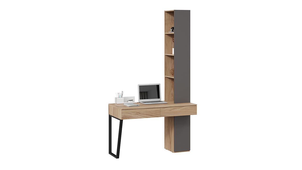 Особенностью данного стола является его угловая конструкция, которая позволяет максимально эффективно использовать пространство в комнате. Вместительные ящики и шкаф с полками обеспечивают удобное хранение всех необходимых аксессуаров и документов.