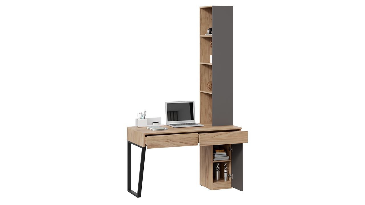 Письменный стол угловой с ящиками и шкафом "Яблоня Беллуно/Графит софт" - это современное и функциональное решение для организации рабочего пространства.