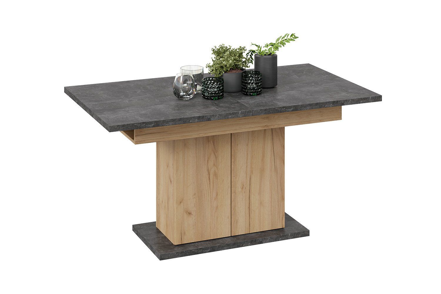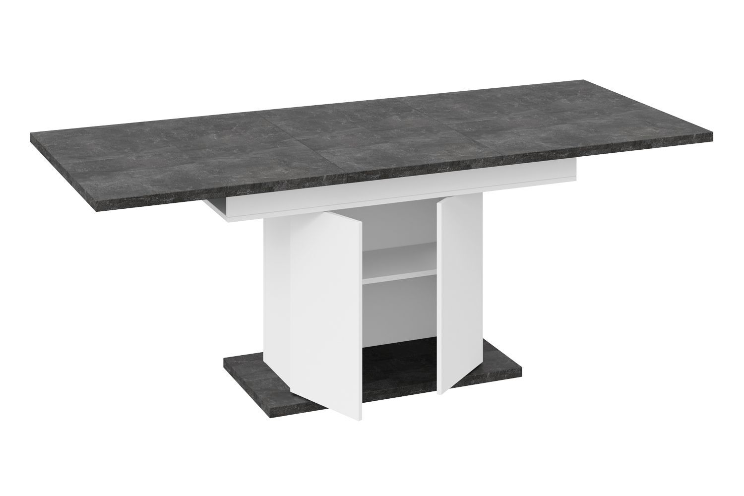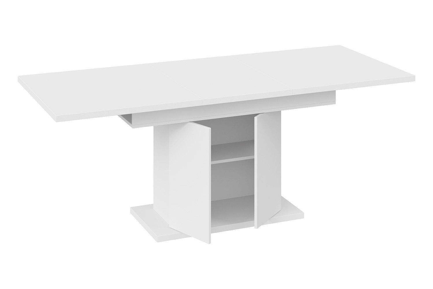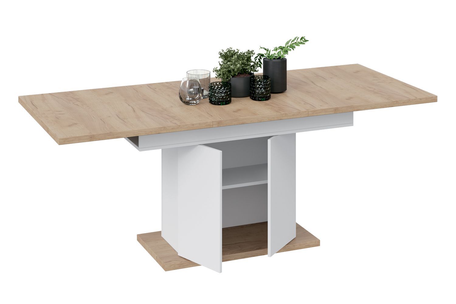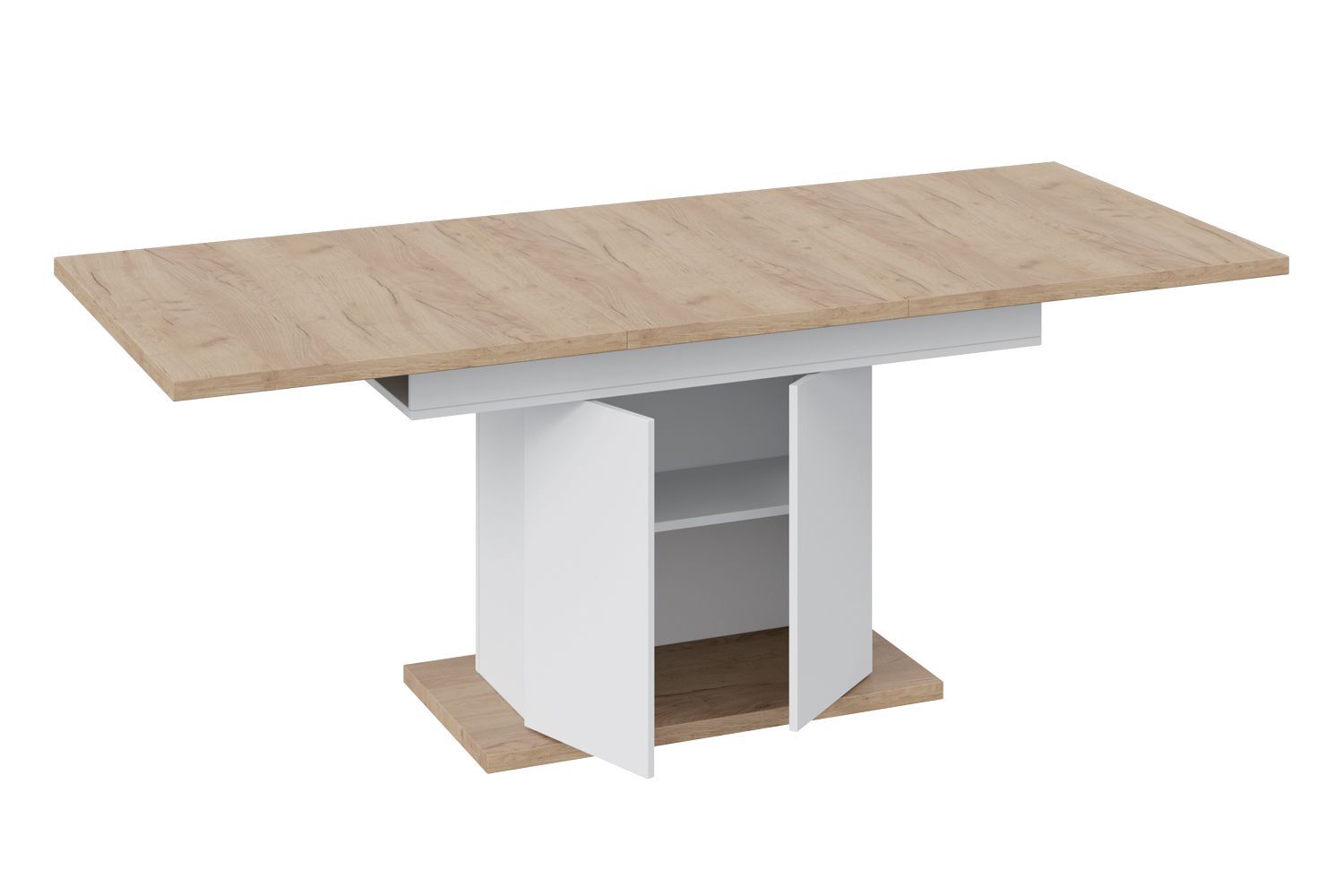 Функциональность. Стол «Дюна» Тип 1 имеет надежный ручной синхронный механизм раздвижения со вставкой, которая укладывается вручную. Это выручает в моменты прихода гостей, которых хочется разместить свободно и с комфортом. Наша новинка удивит Вас своей практичностью. Конструкция опоры этой модели предусматривает наличие ниши с полкой для хранения необходимых предметов за дверцами, открывающимися легким нажатием руки.