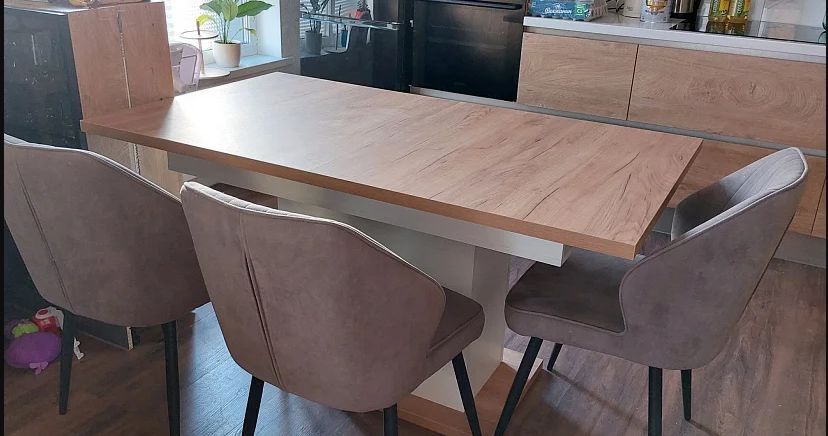 Этот обеденный стол идеально подойдет как для кухни, так и для столовой или гостиной. Благодаря стильному дизайну и компактным размерам, он легко впишется в любое помещение.