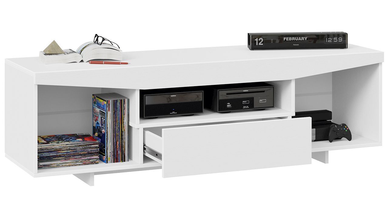 Тумба под телевизор напольная Белый Ясень оснащена шариковыми направляющими, обеспечивающими плавное и бесшумное открывание ящиков. Максимальная нагрузка на тумбу составляет 30 кг.