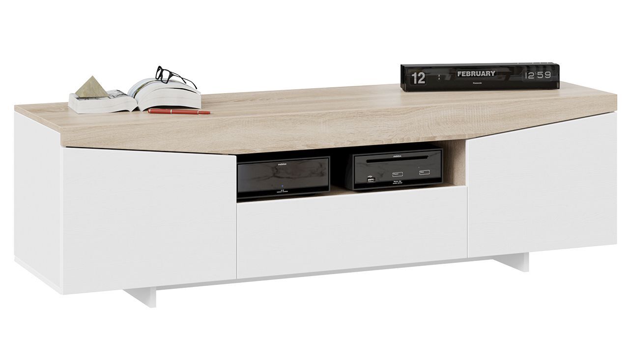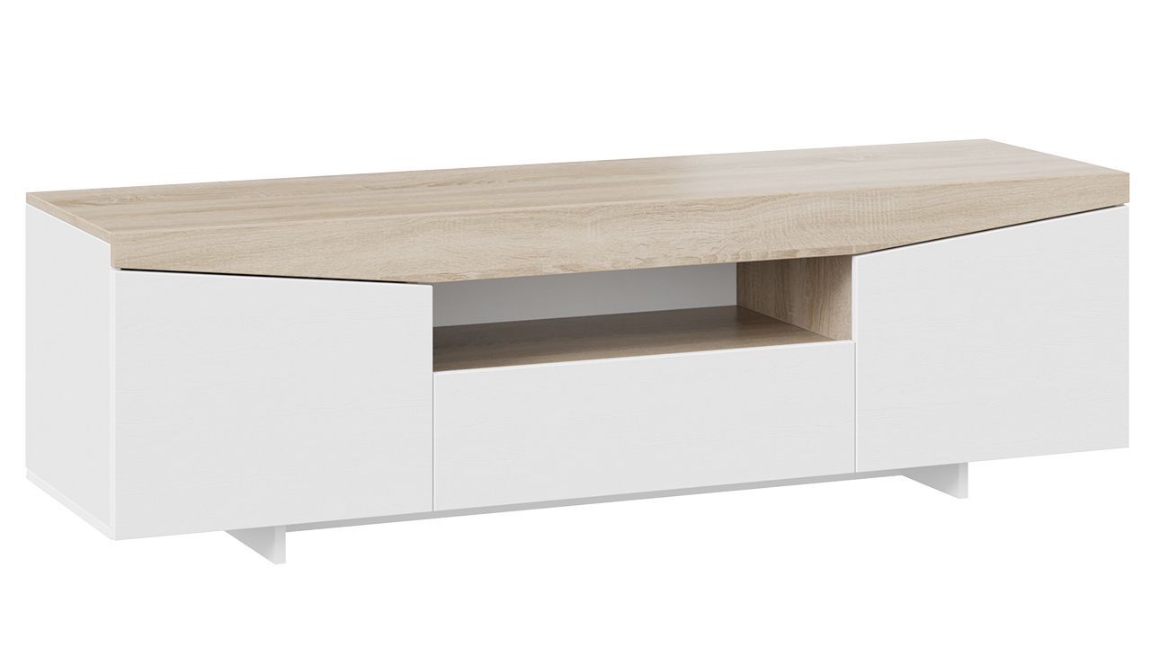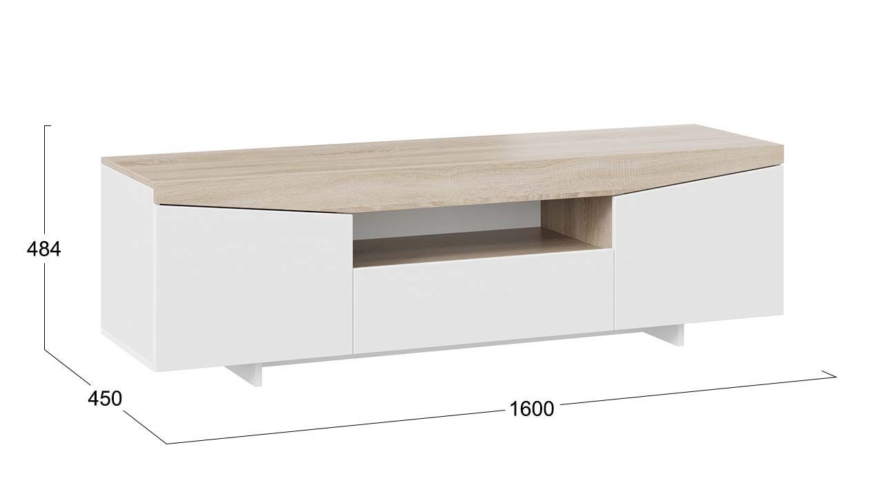 Тумба под телевизор напольная Белый Ясень/Дуб Сонома 160х45х48 см станет отличным дополнением к вашему интерьеру и обеспечит комфортное размещение телевизора и других предметов.