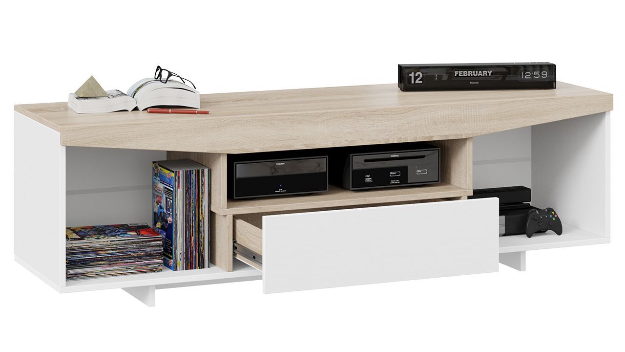 Тумба под телевизор напольная Белый Ясень/Дуб Сонома 160х45х48 см - стильное и функциональное решение для вашего дома или офиса.