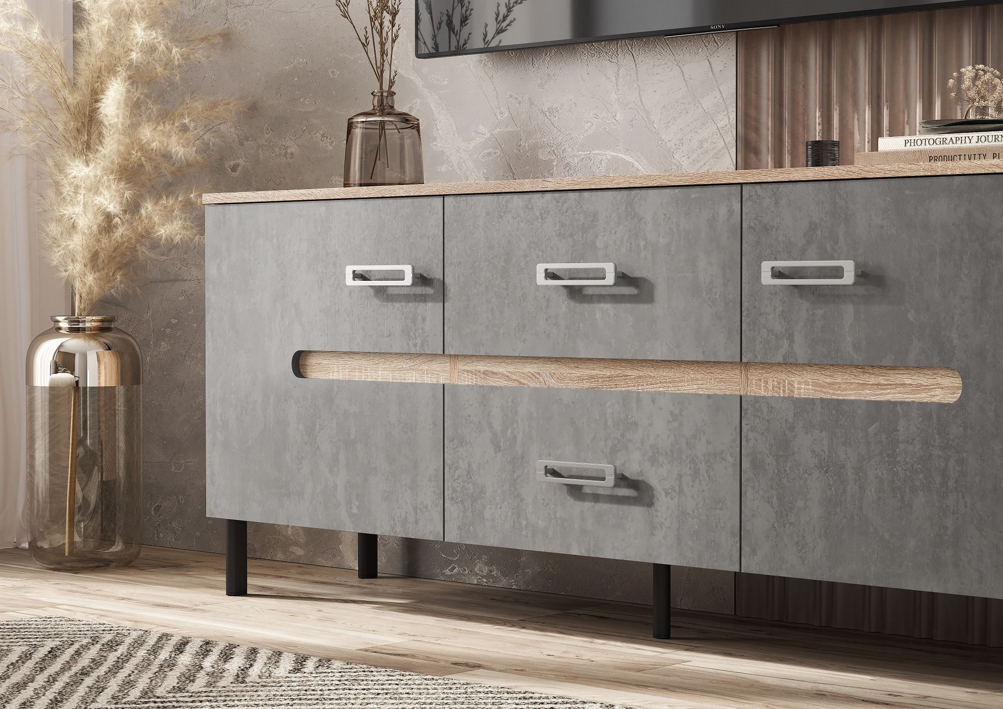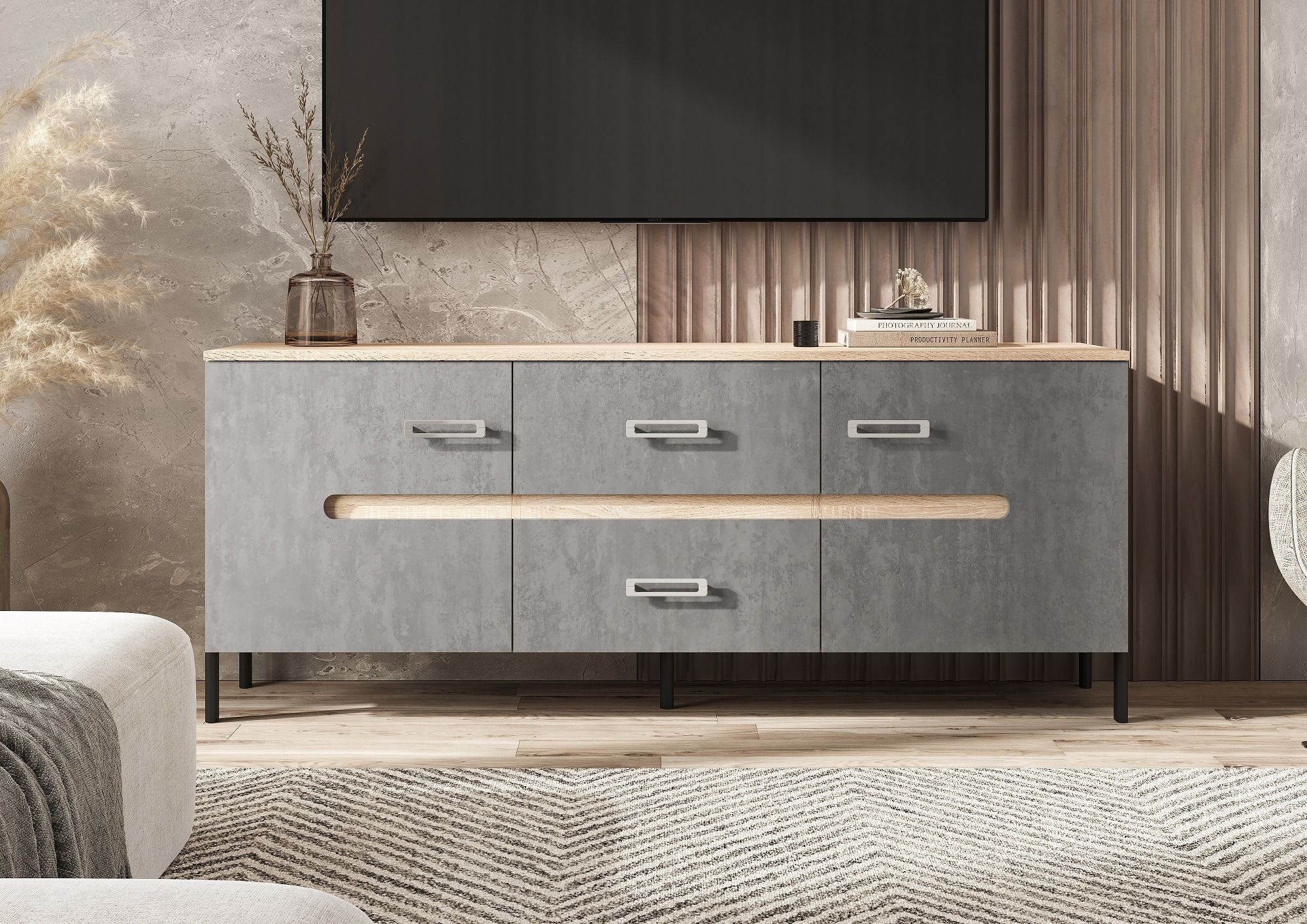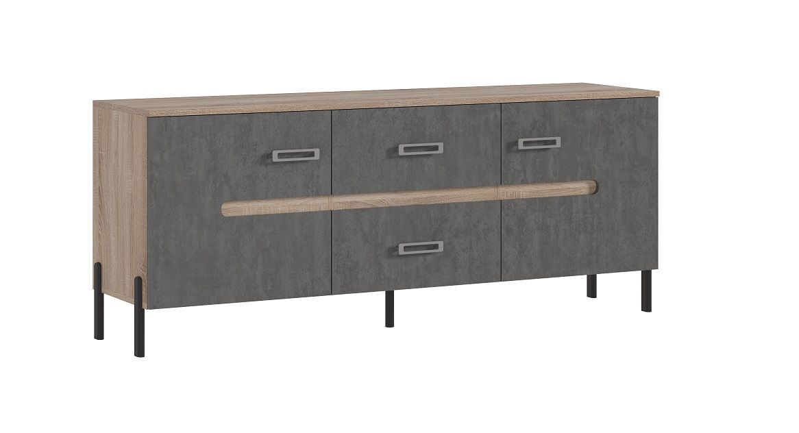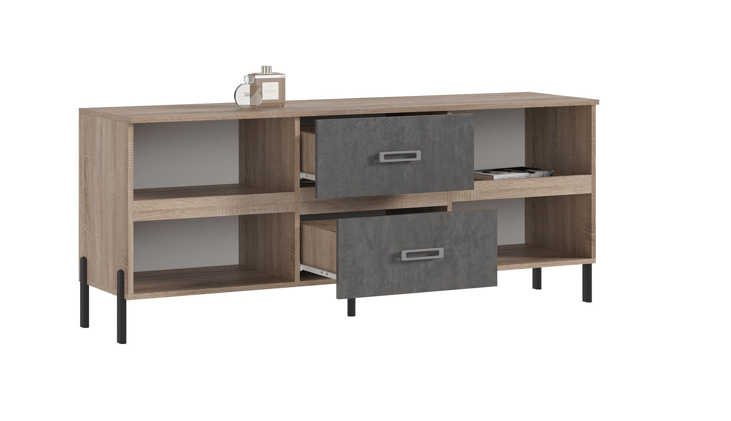 Тумба под телевизор напольная Металл сонома/Бетон темный 160х42х65 - это стильное и функциональное решение для вашего дома или офиса.
