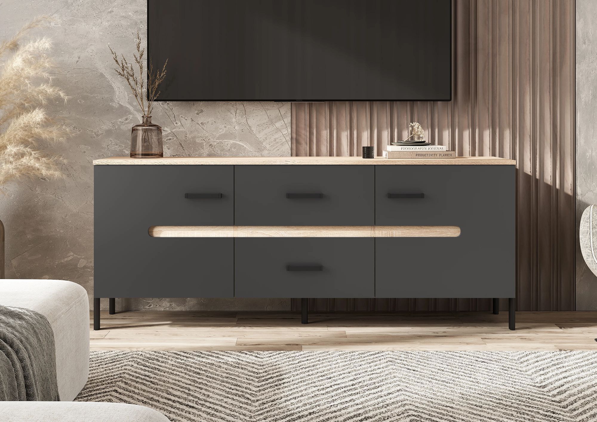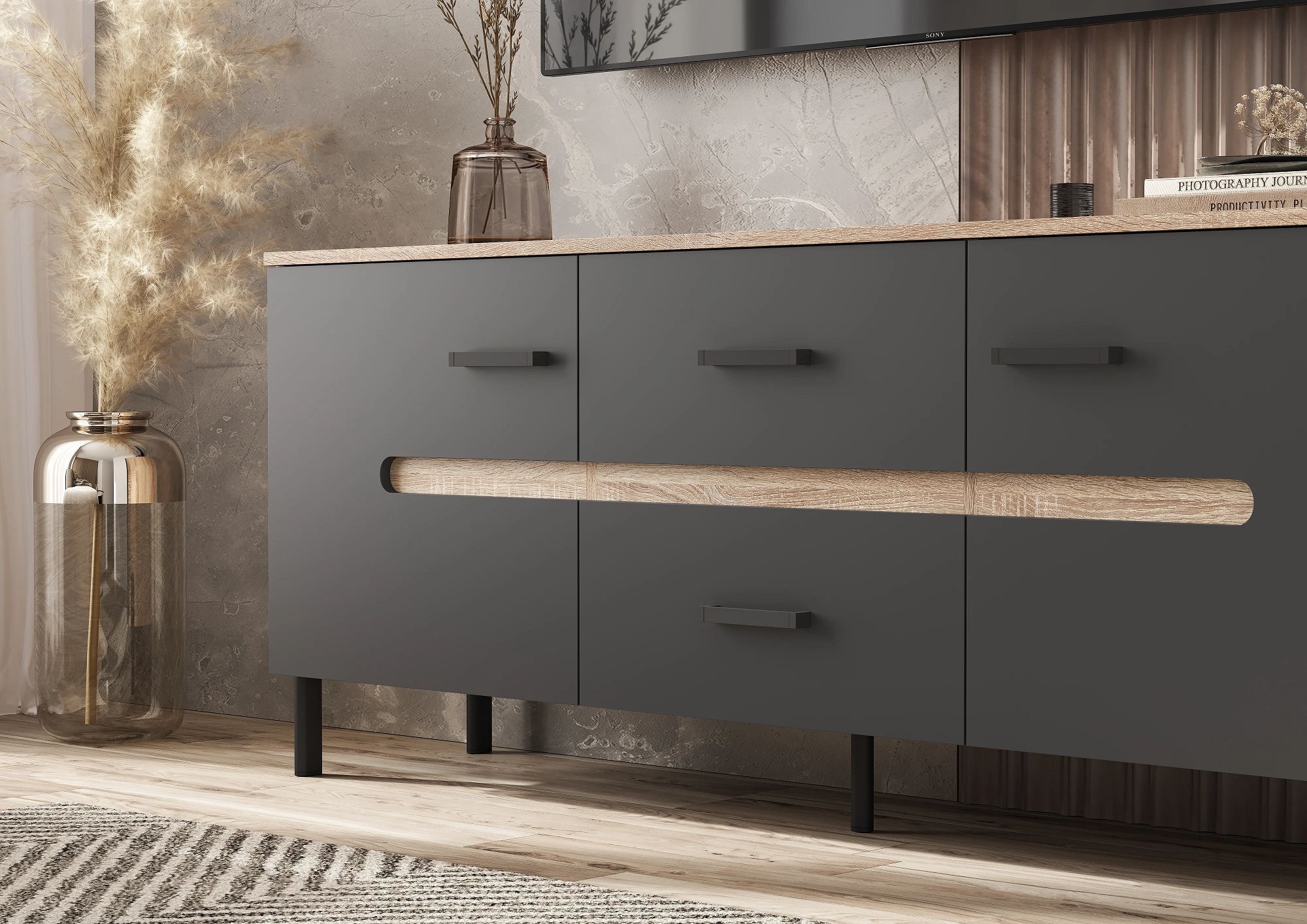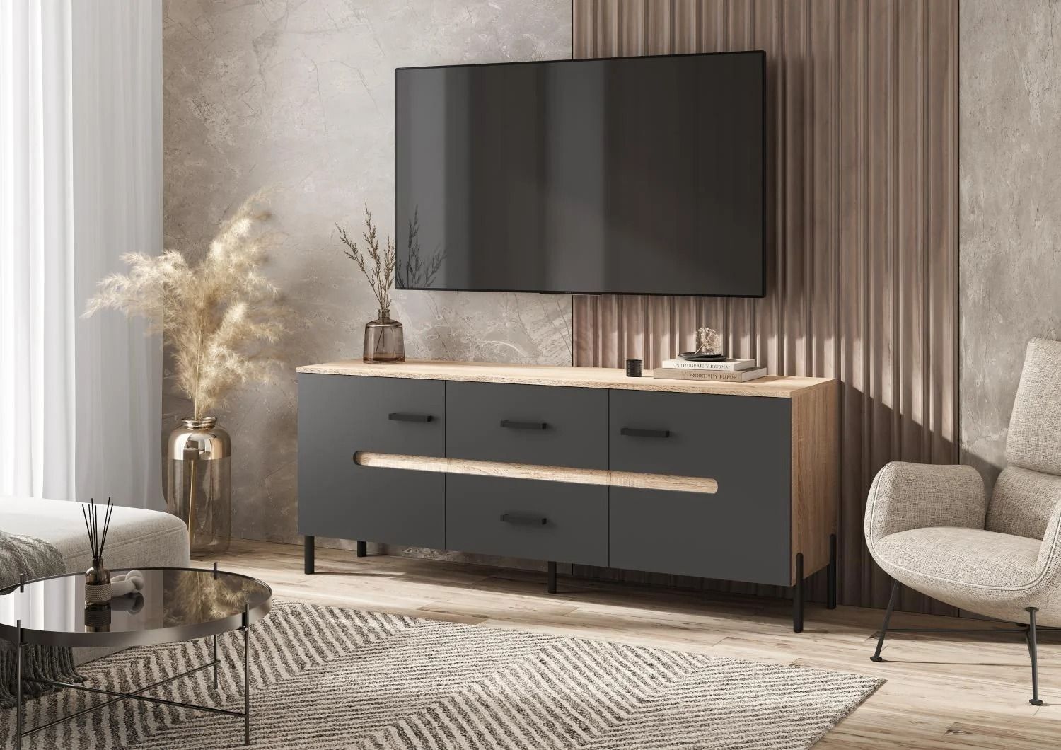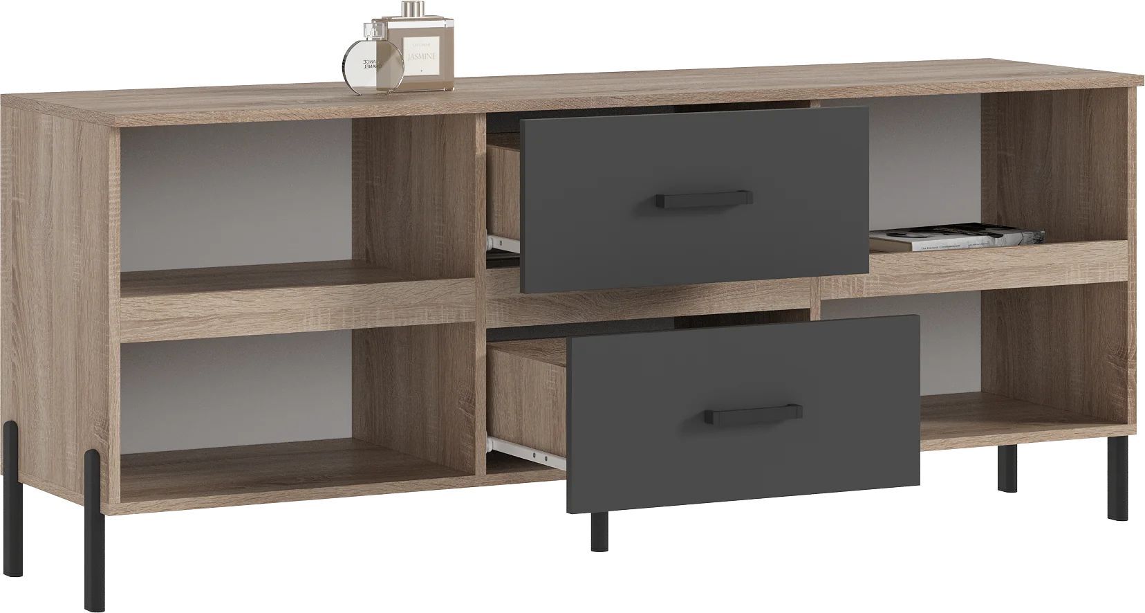 Тумба под телевизор напольная Металл сонома/Графит 160х42х65 - это не только стильный элемент интерьера, но и практичный выбор для тех, кто ценит комфорт и функциональность.