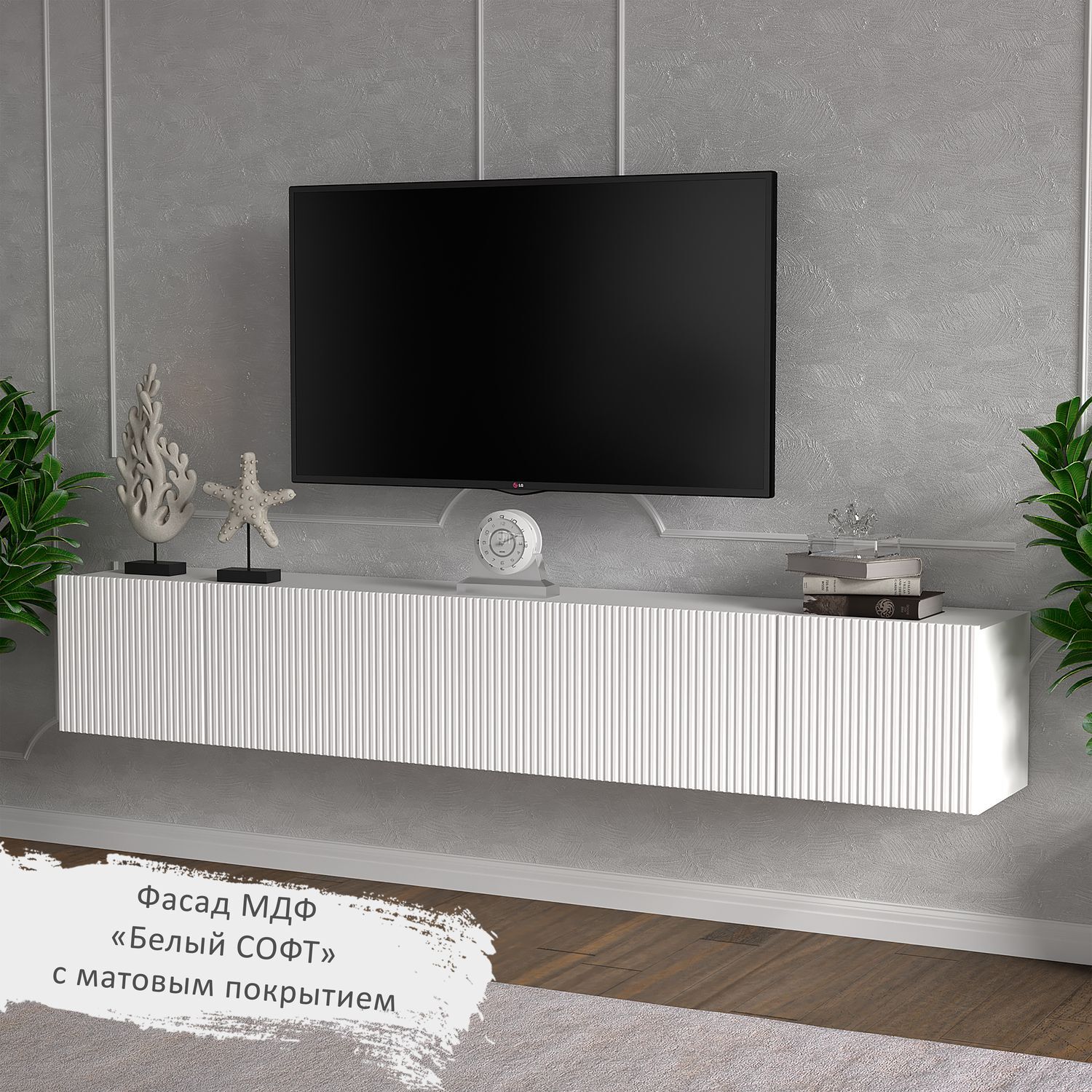 Тумба тв матовая белая навесная "Паола"