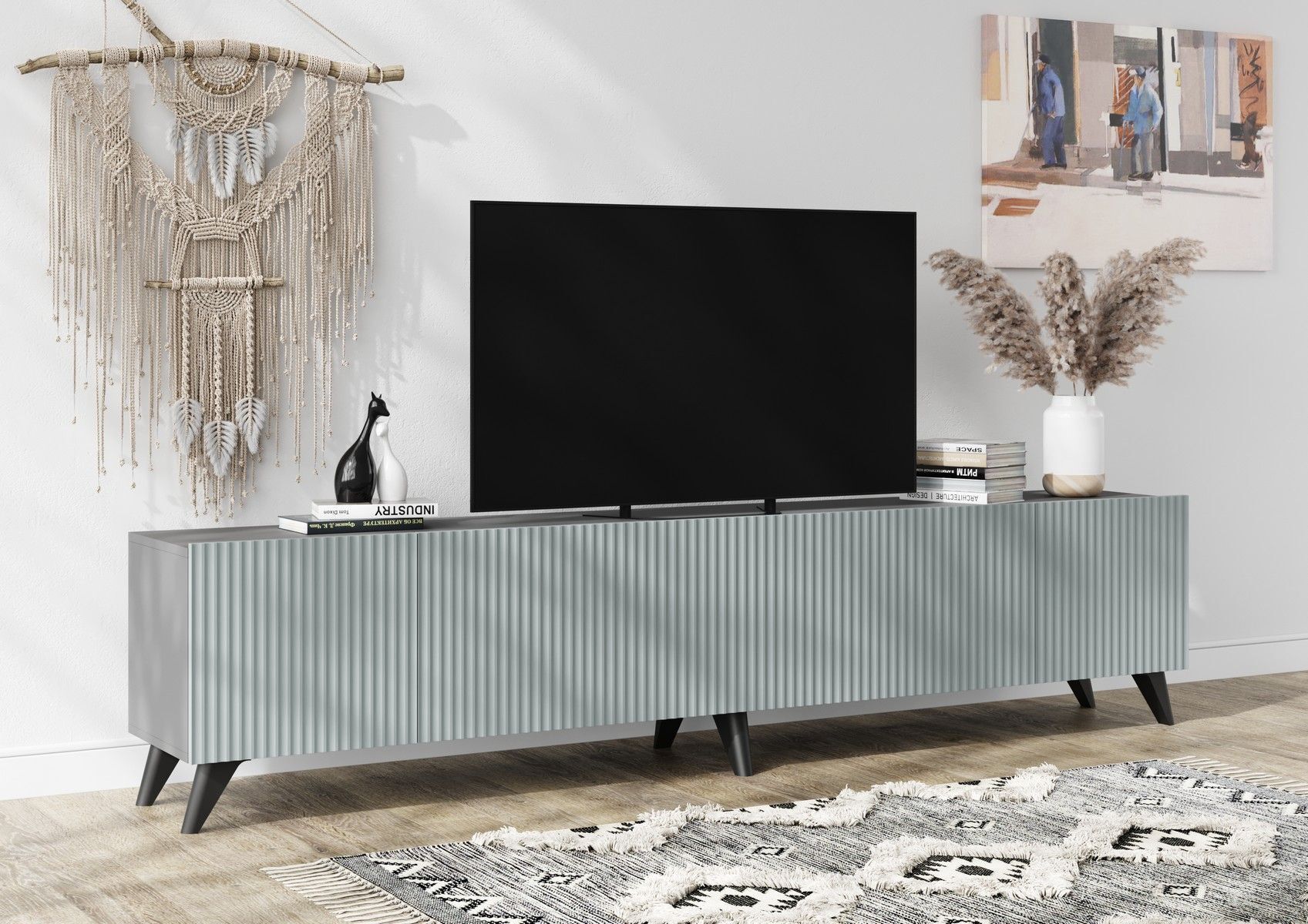 Тв тумба на ножках "Серый шифер" — идеальное решение для вашего интерьера. Эта стильная тумба под телевизор сочетает в себе современный дизайн и функциональность. Просторный верхний столик предоставляет достаточно места для установки вашего телевизора, а также различных аксессуаров — от пультов до фото-рамок. Ножки придают конструкции устойчивость и добавляют элегантности.